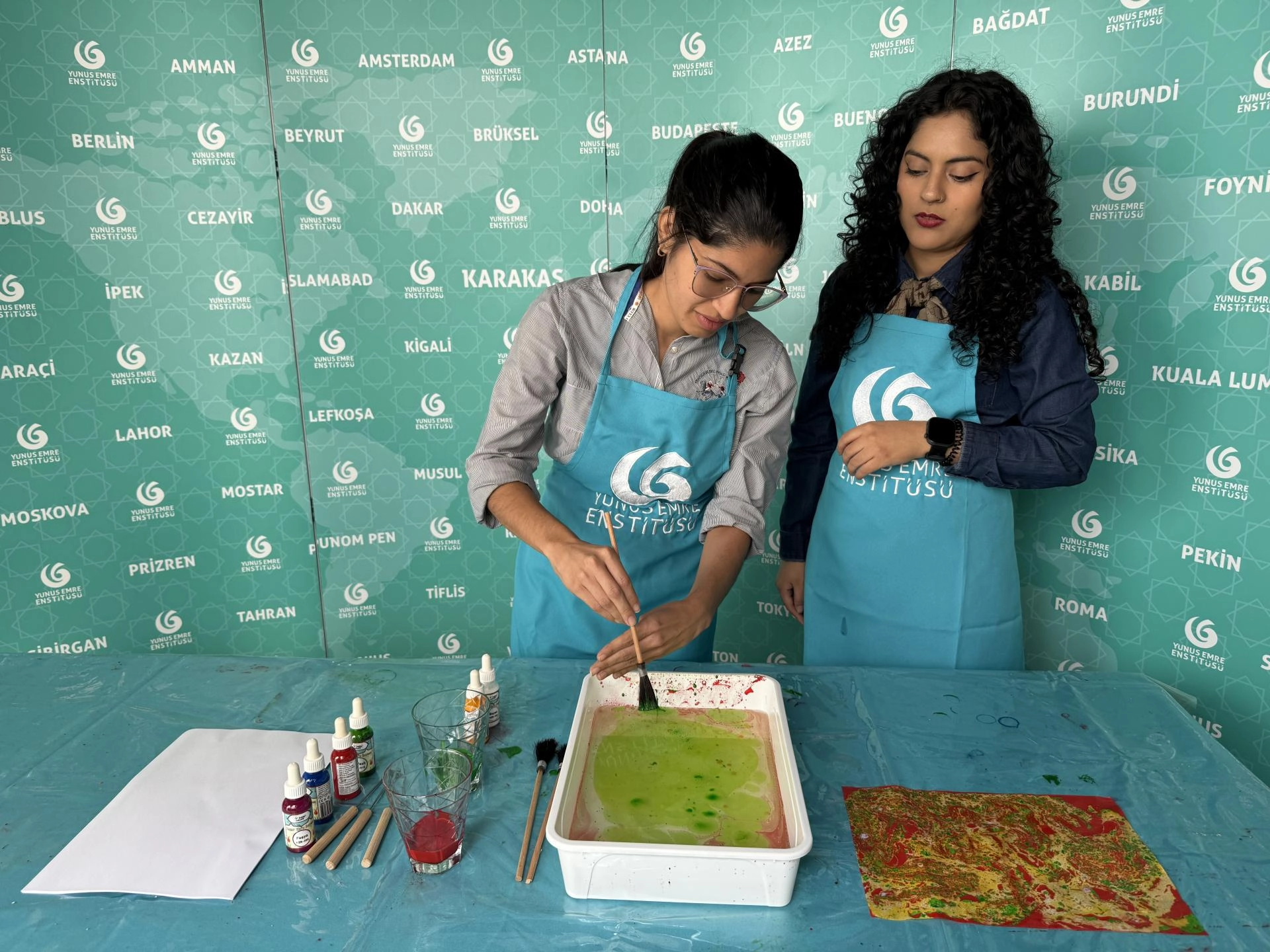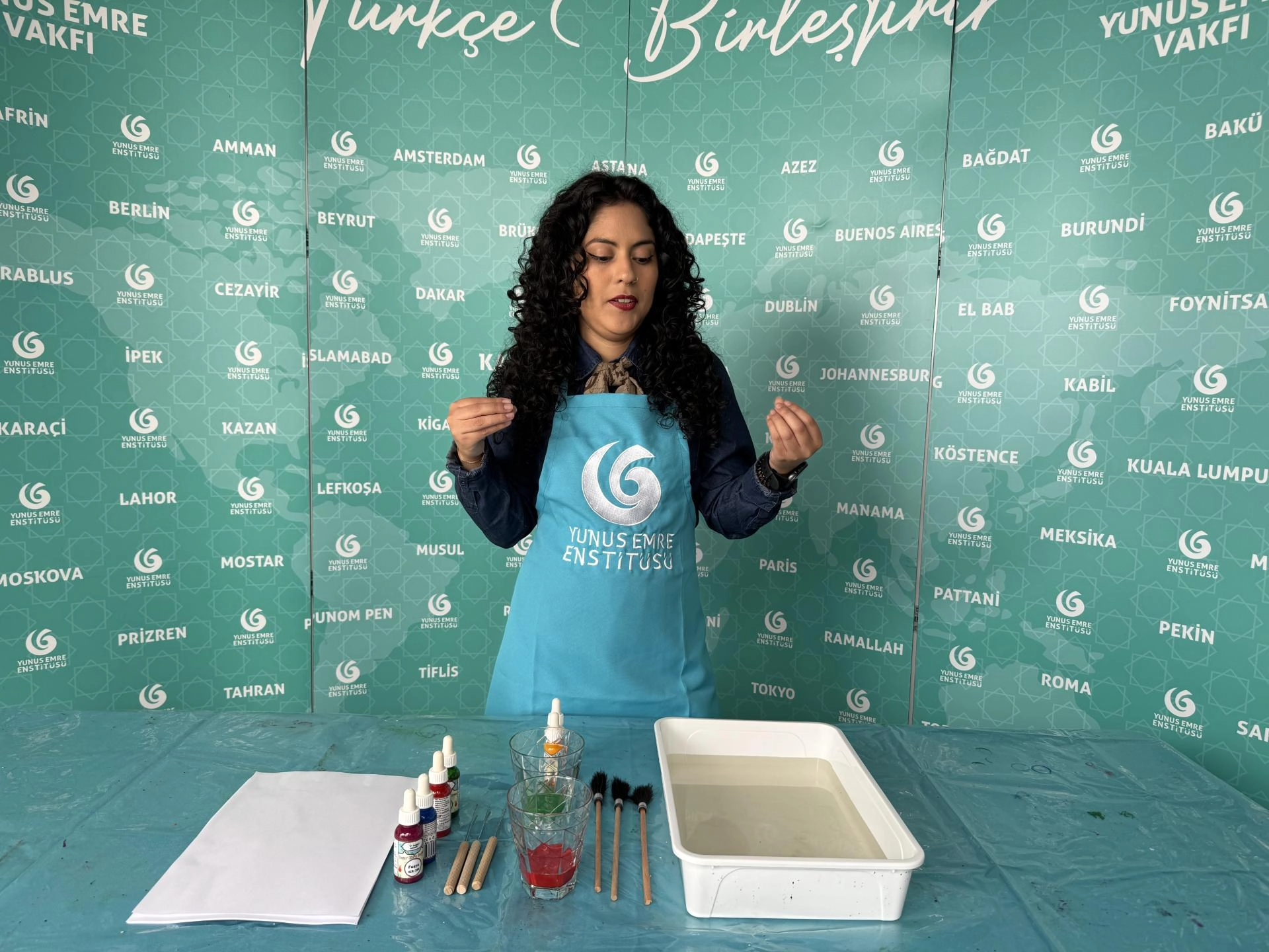 Victoria, bir yandan YEE'de Türkçe eğitimine devam ederken, diğer yandan Türkiye’den binlerce kilometre ötede kadim Türk sanatı Ebru ile yeteneklerini gösterme fırsatı elde ediyor.