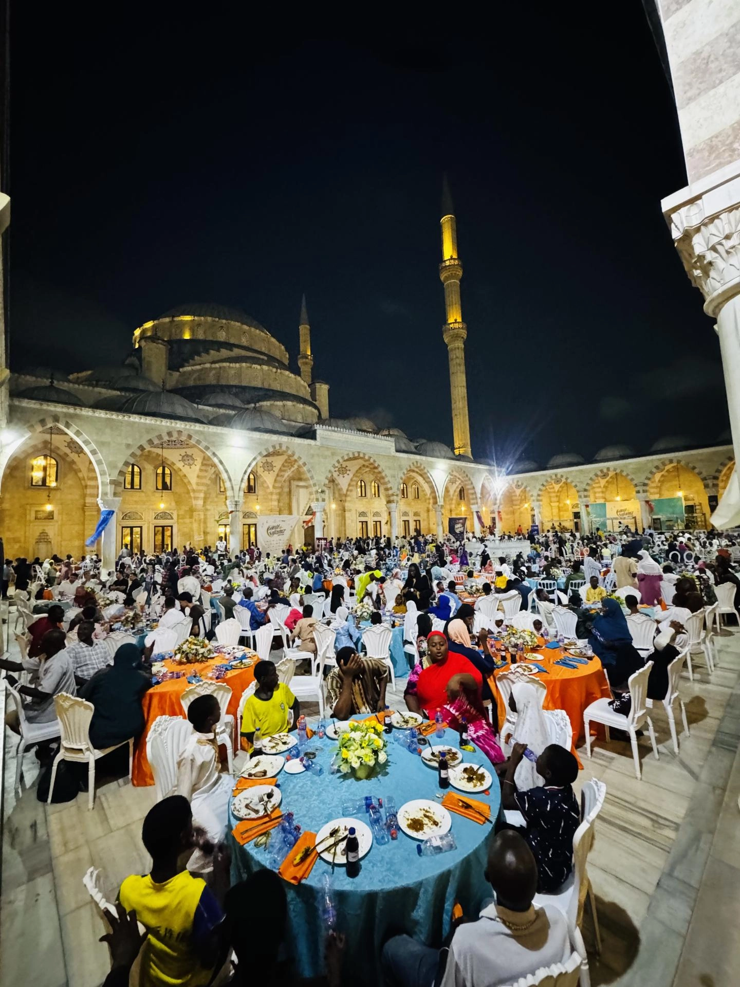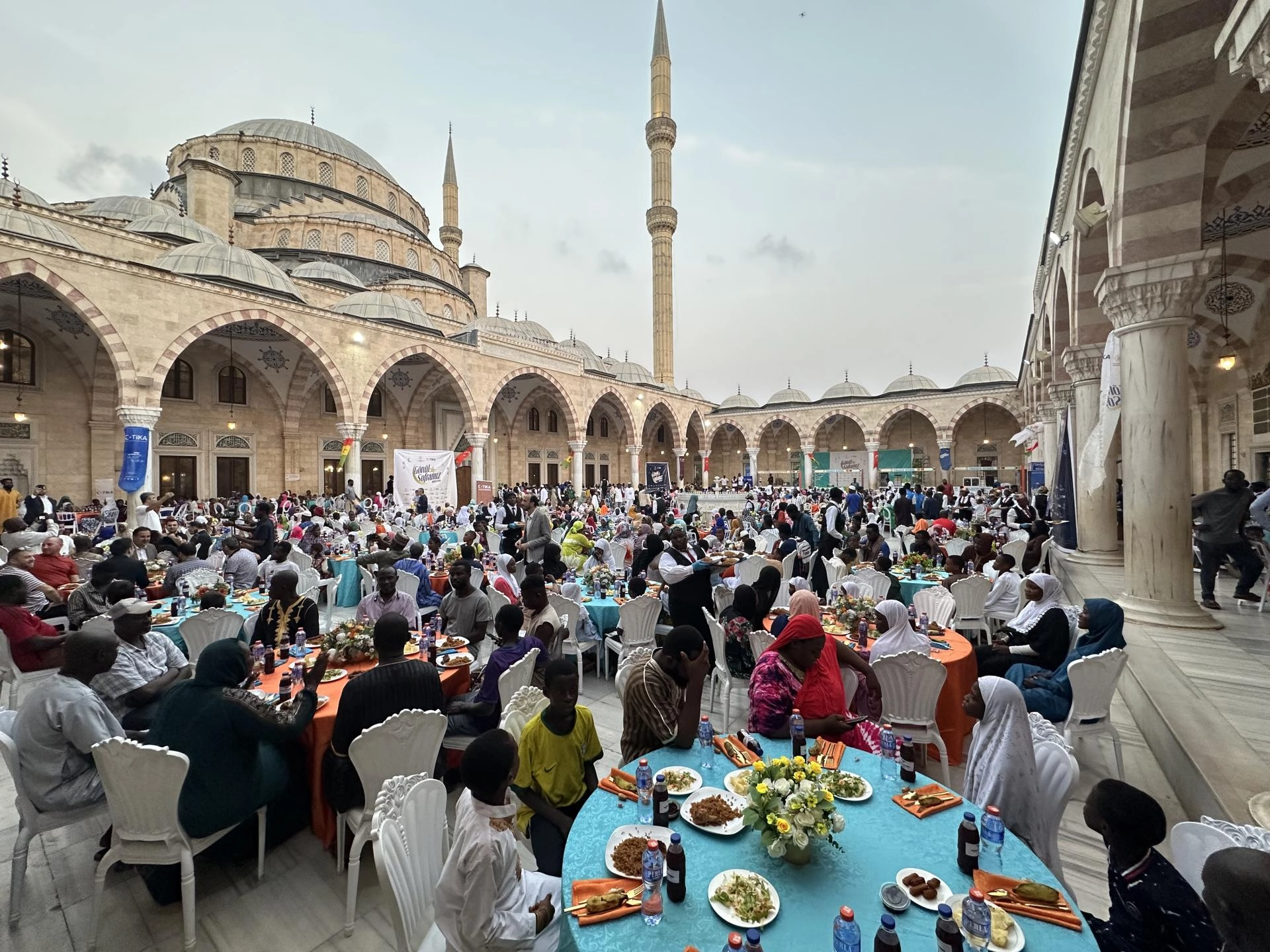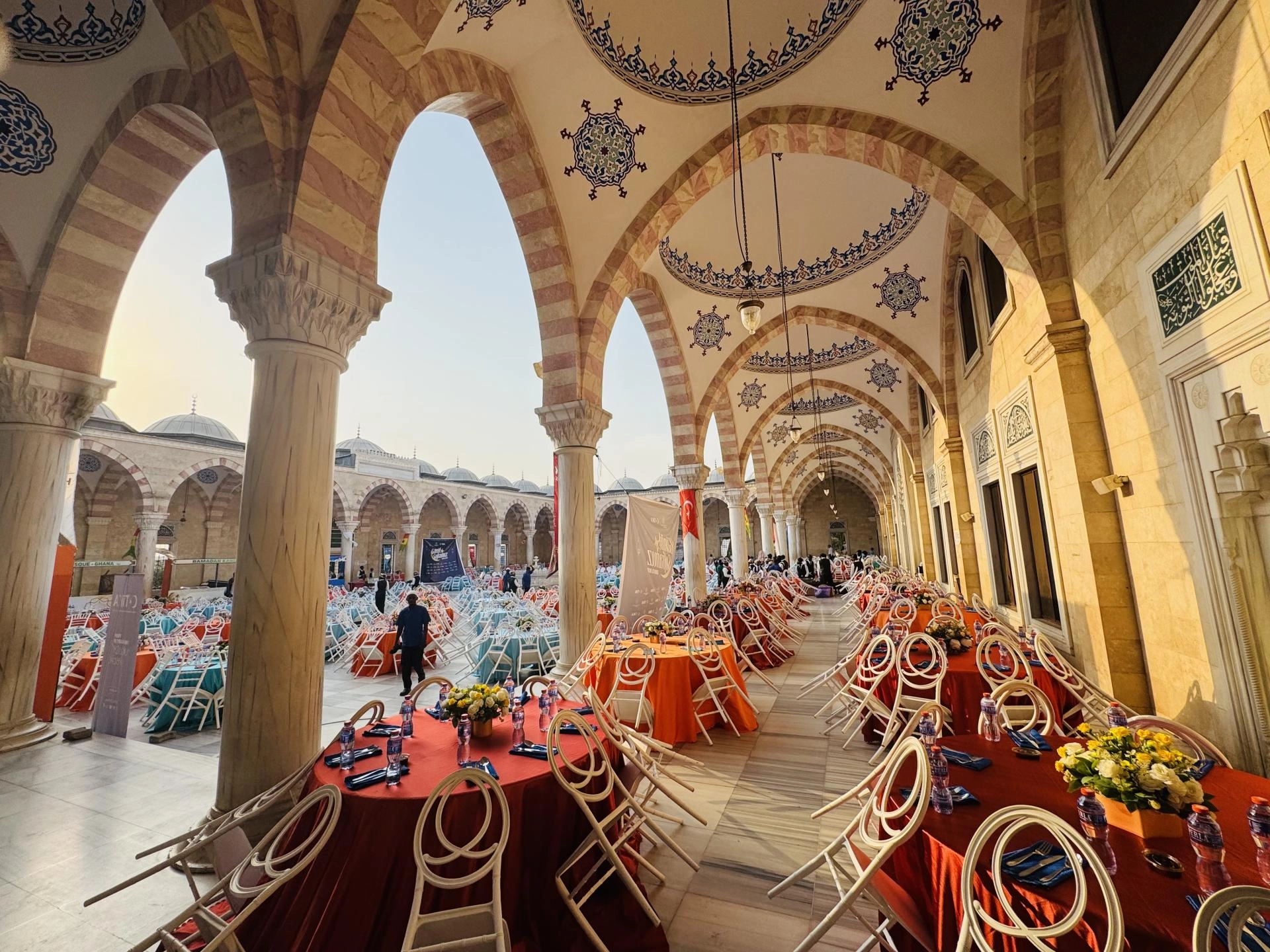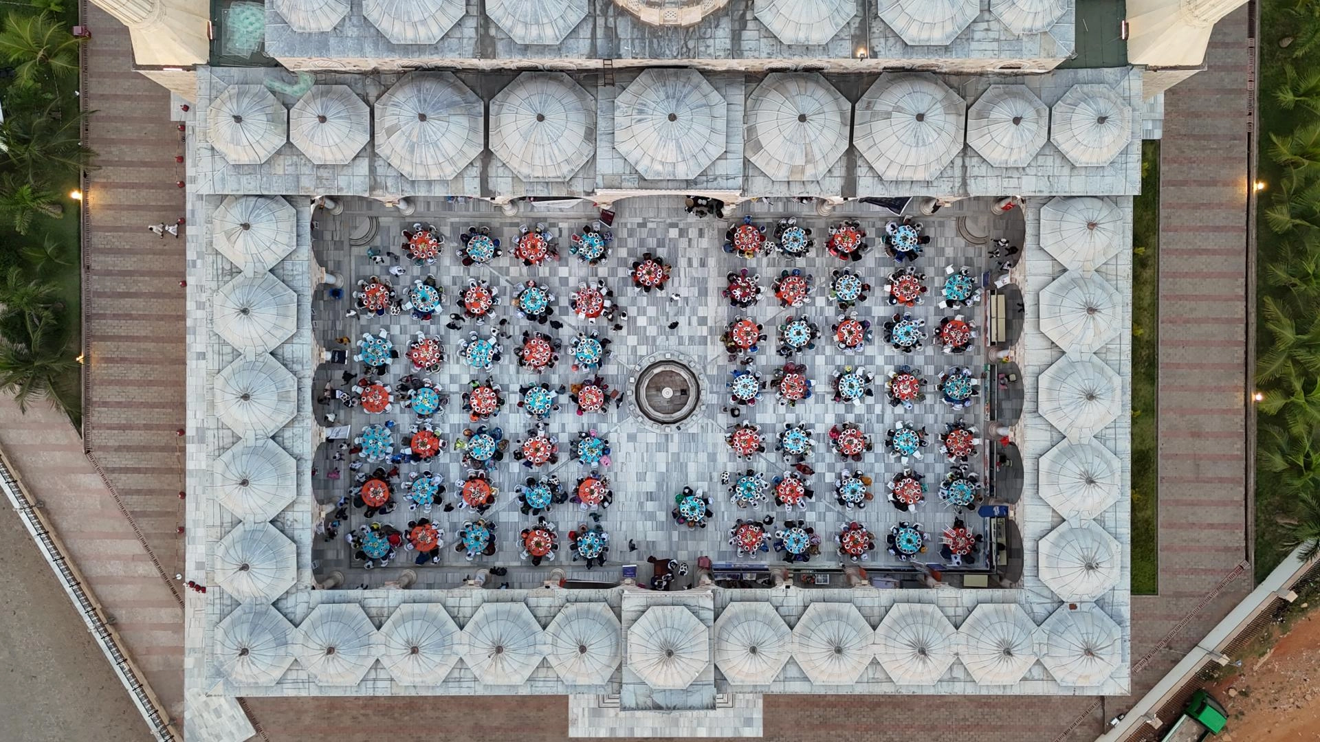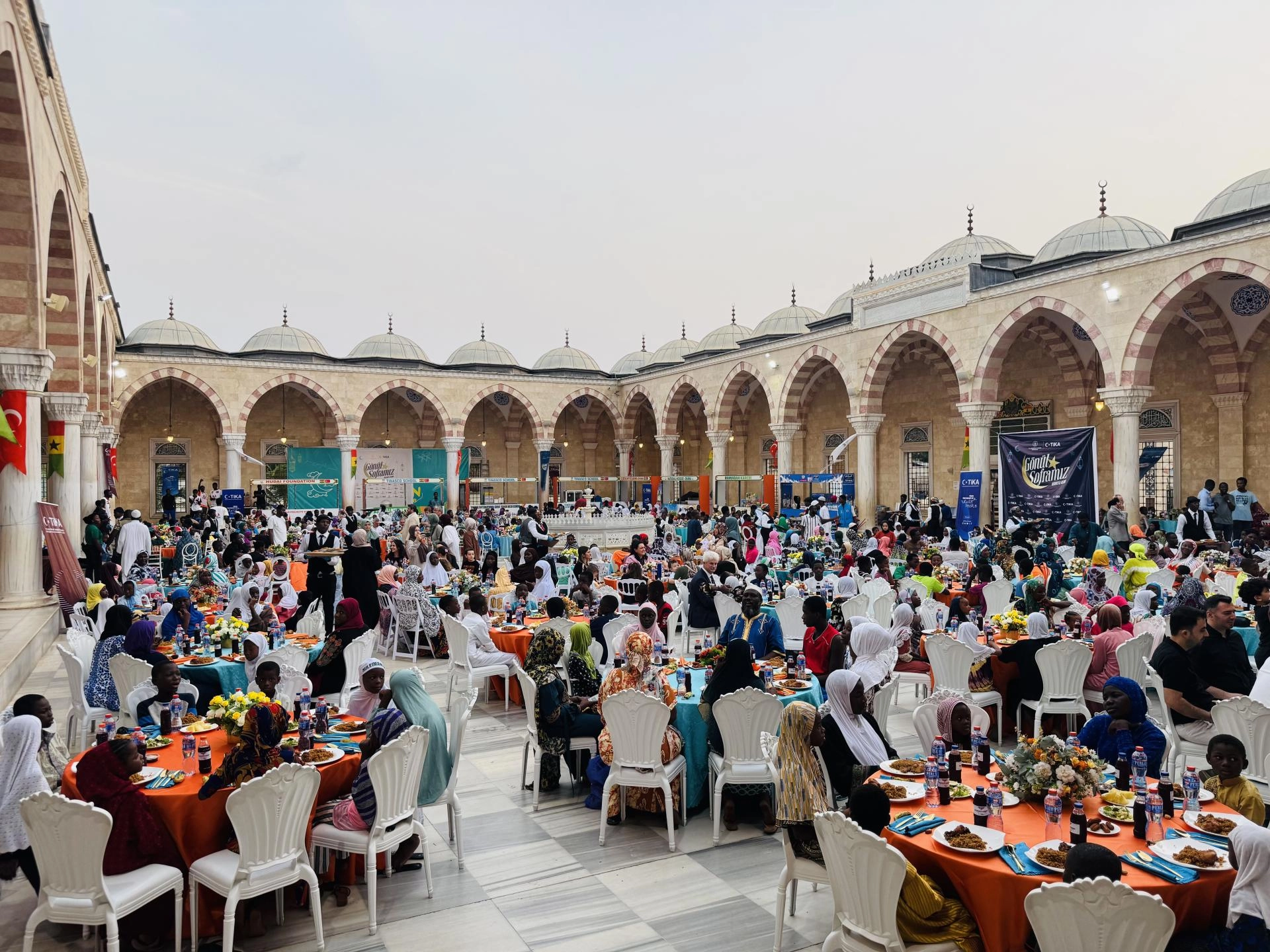 İftar programı, Türk hayırseverlerin desteğiyle inşa edilen Gana Milli Cami ve Külliyesi'nin avlusunda düzenlendi.