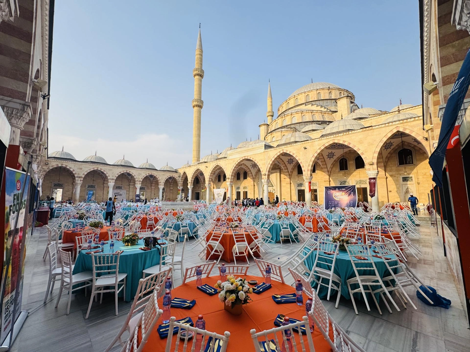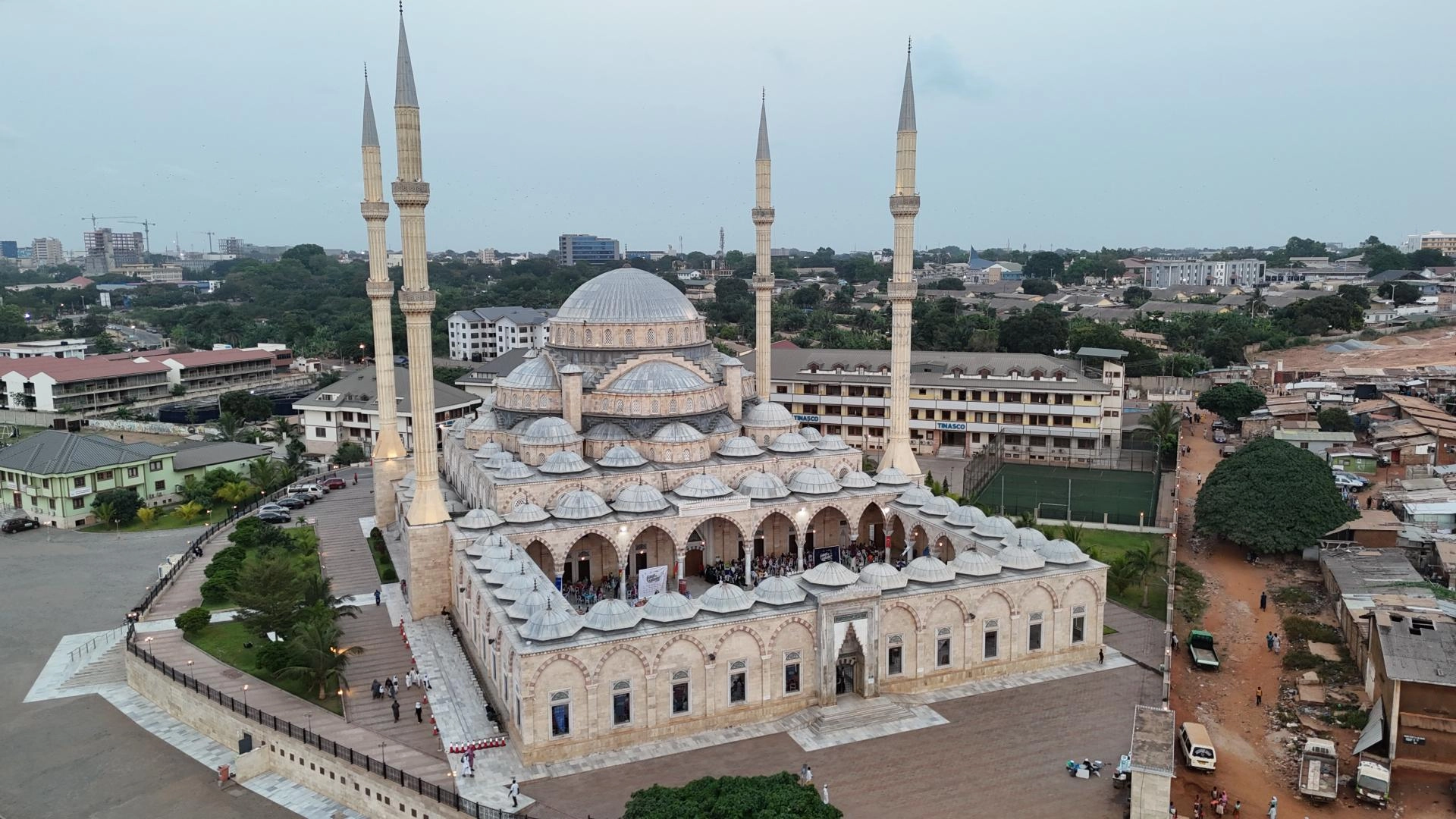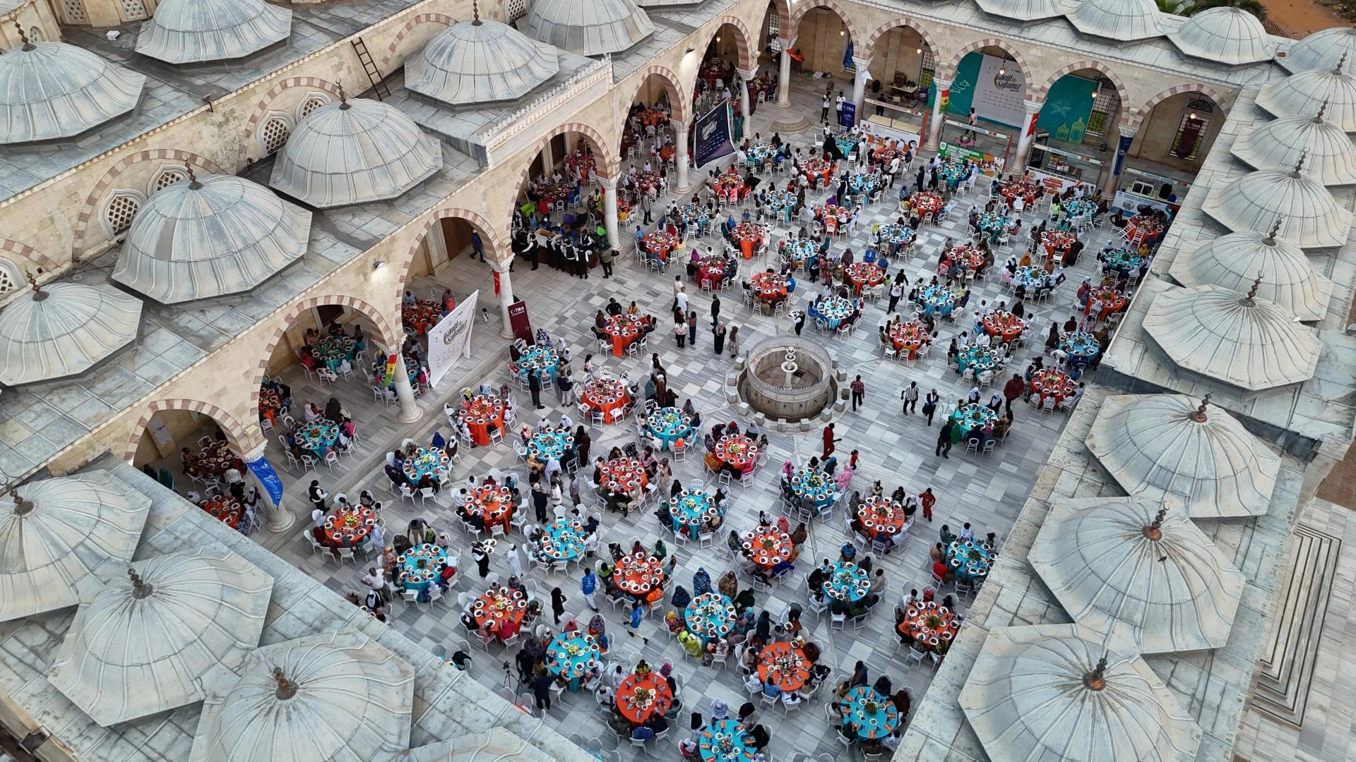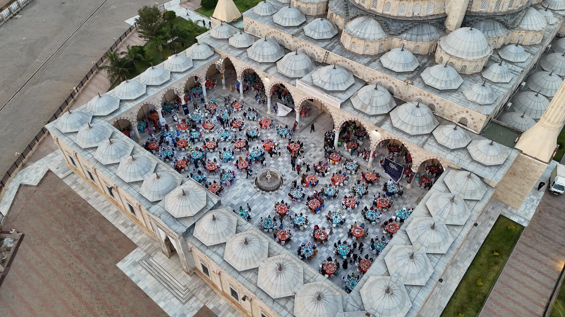 İftar programı, Türk hayırseverlerin desteğiyle inşa edilen Gana Milli Cami ve Külliyesi'nin avlusunda düzenlendi.
