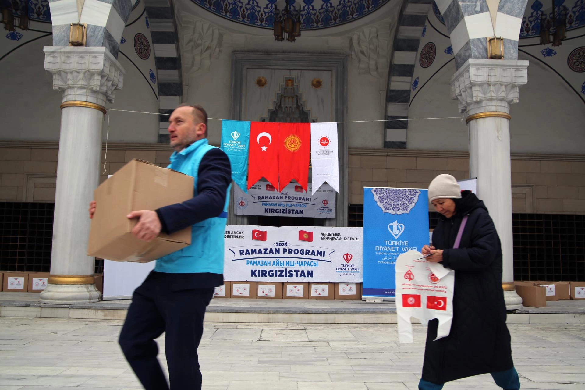 Türkiye'nin Bişkek Büyükelçiliğinin Din Hizmetleri Müşavirliğince, başkent Bişkek'teki Merkez İmam Serahsi Camisi'nde ramazan ayı vesilesiyle gıda yardım etkinliği düzenlendi.