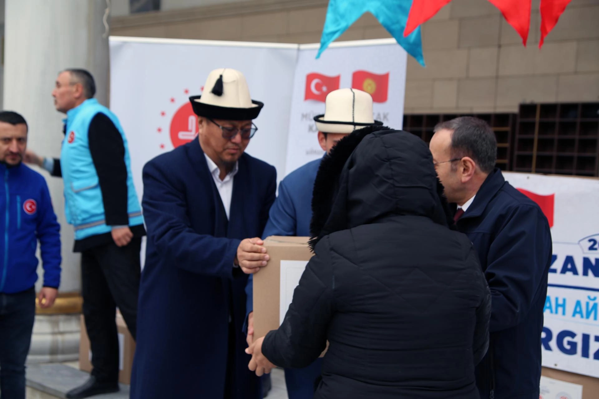 Yardım kolisini teslim alan Ulan Kasımbekov ise Türk halkına teşekkür ederek, "Bugün Türk kardeşlerimizin uzattığı yardım elini teslim aldık. Cömertliğiniz eksik olmasın. Allah hepinizden razı olsun." ifadelerini kullandı.