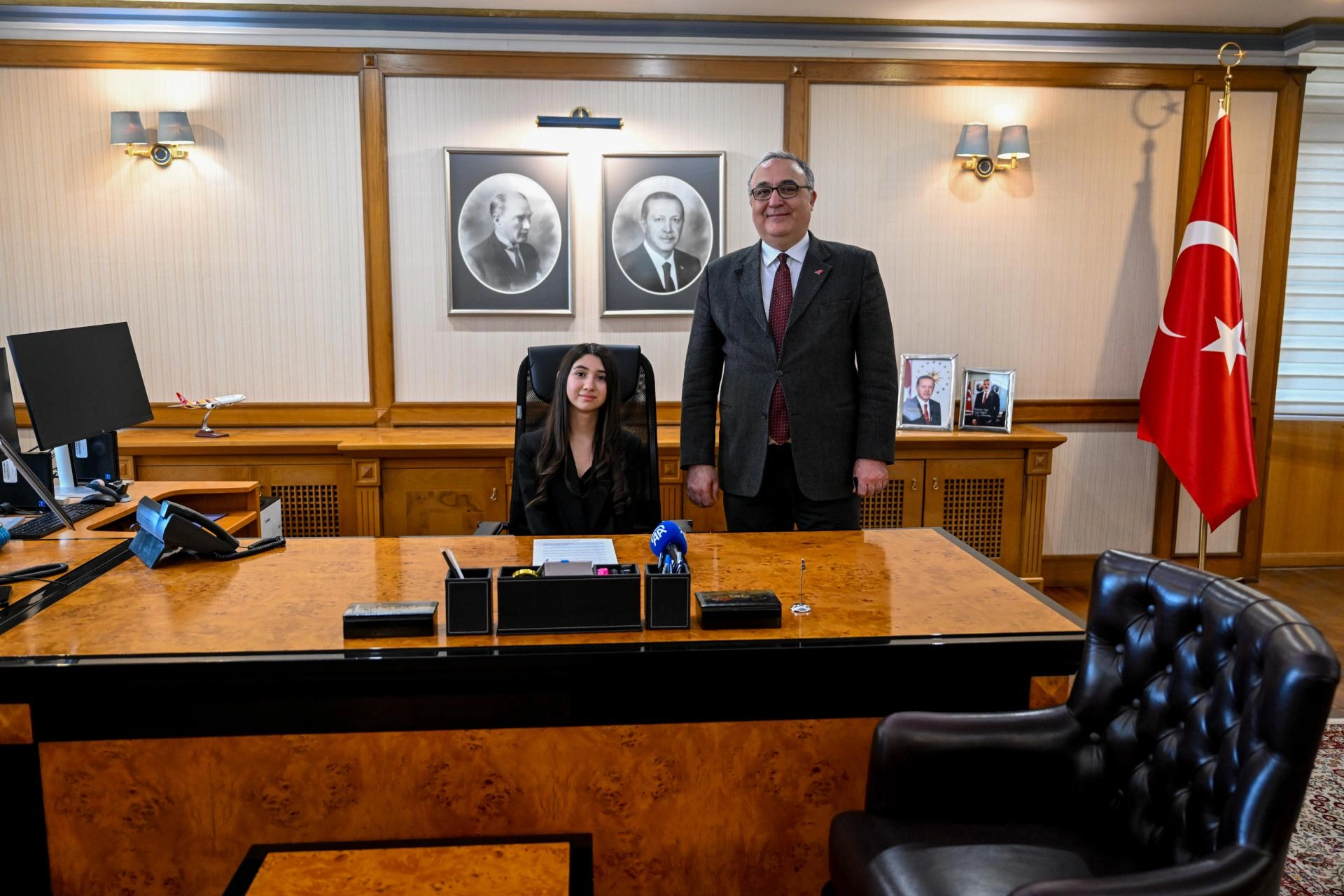 Büyükelçi Bilgiç'in makam koltuğuna oturan 13 yaşındaki Demirel, Türkiye'nin zengin tarihini, güçlü kültürünü, misafirperverliğini, farklıklarını bir arada yaşatan yapısını dünyaya anlatmak istediğini belirtti.
