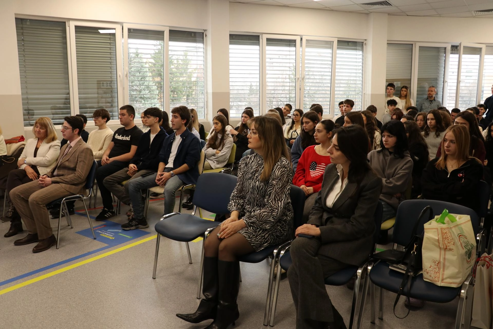 Bulgaristan'ın başkenti Sofya'da Prof. Ivan Apostolov Özel Dil Lisesi'ni ziyaret eden Büyükelçi Uyanık, 11. sınıf öğrencileriyle diplomasi deneyimlerini paylaştı ve onların sorularını yanıtladı.