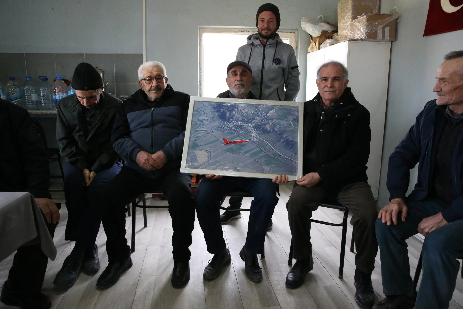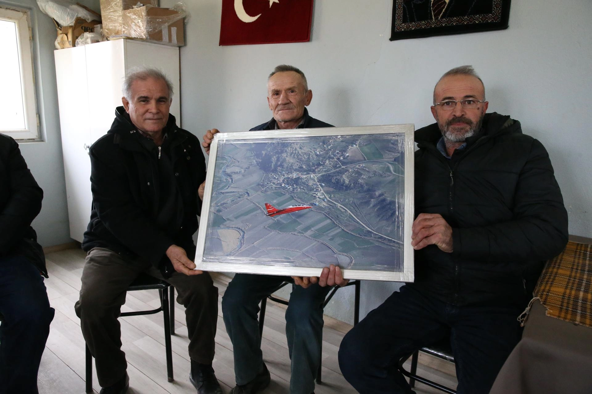 ESKİŞEHİR (AA) - Türk Havacılık ve Uzay Sanayii (TUSAŞ) medya ekibi tarafından hava çekimleri gerçekleştirilen HÜRJET'in Eskişehir'in Mihalıççık ilçesine bağlı kırsal Dümrek Mahallesi üzerinden geçtiği sırada çekilen fotoğrafı, mahalleye hediye edildi.