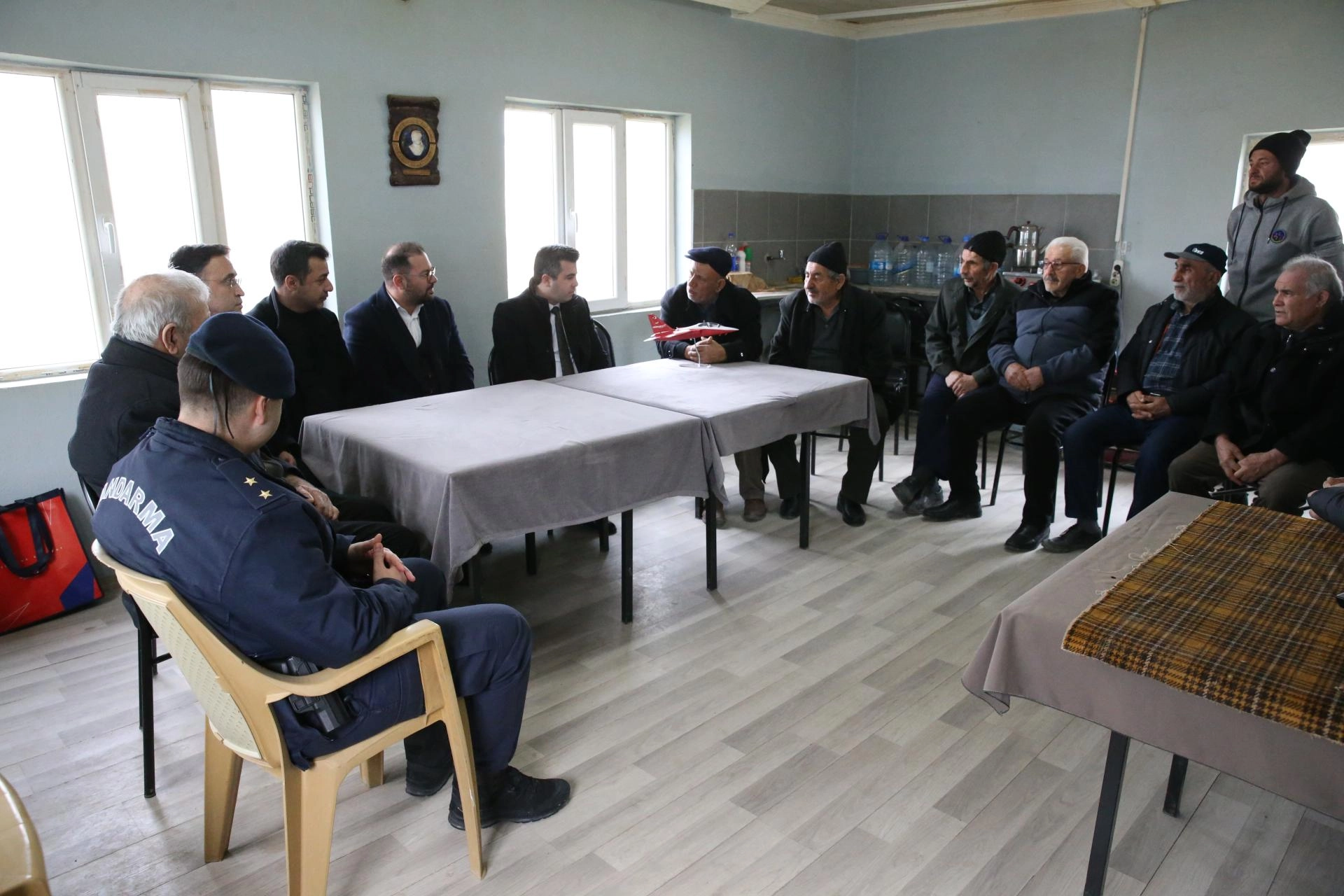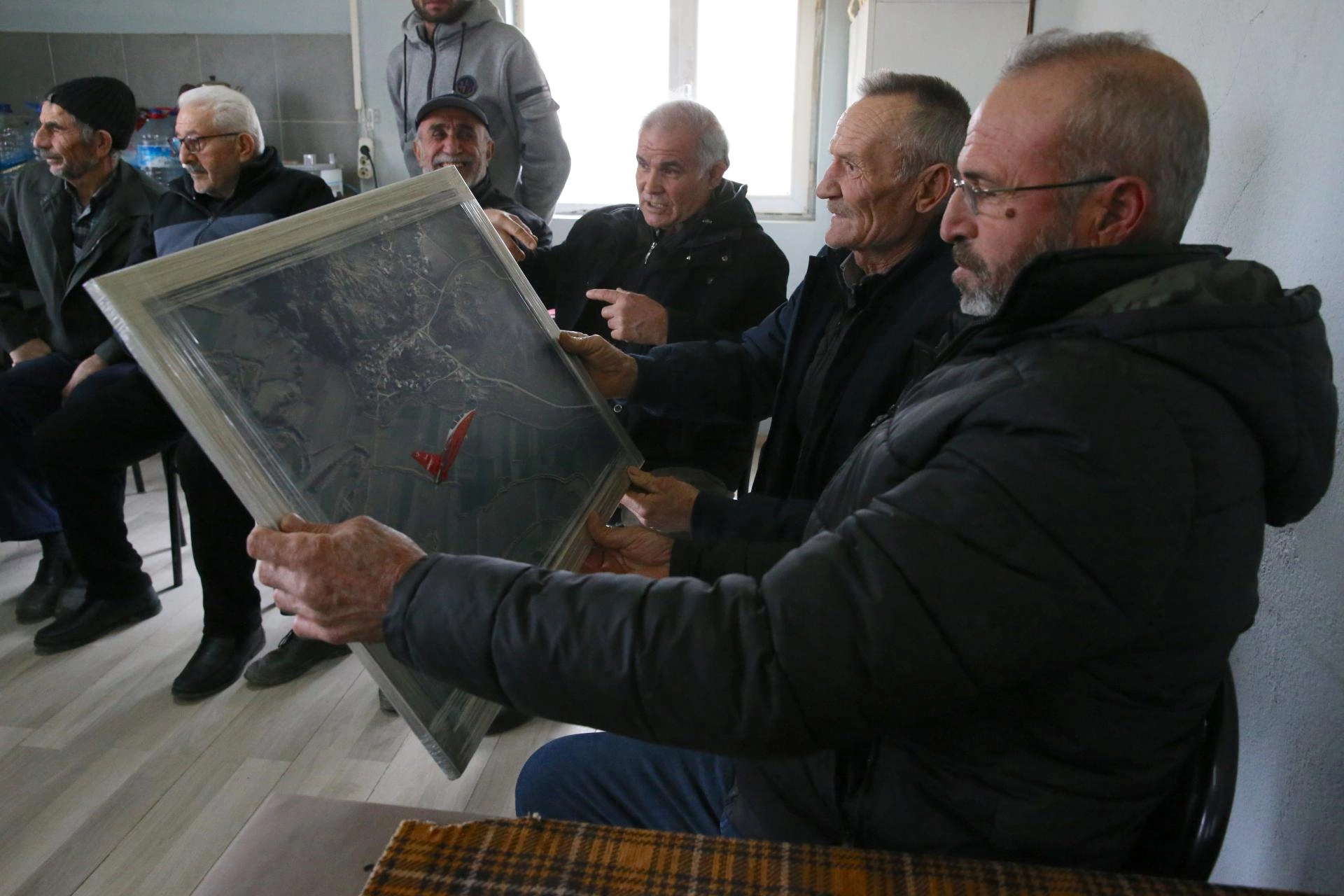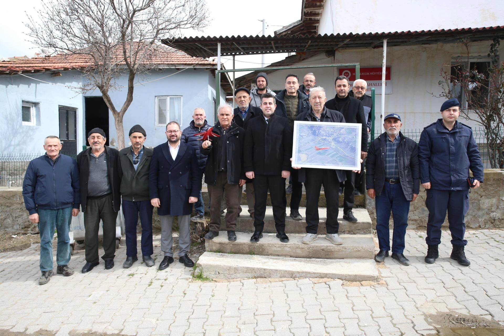 Mahalleye ziyarette bulunan TUSAŞ ekibi, Dümrek Mahallesi Muhtarı İbrahim Erbek ve vatandaşlarla bir araya geldi.