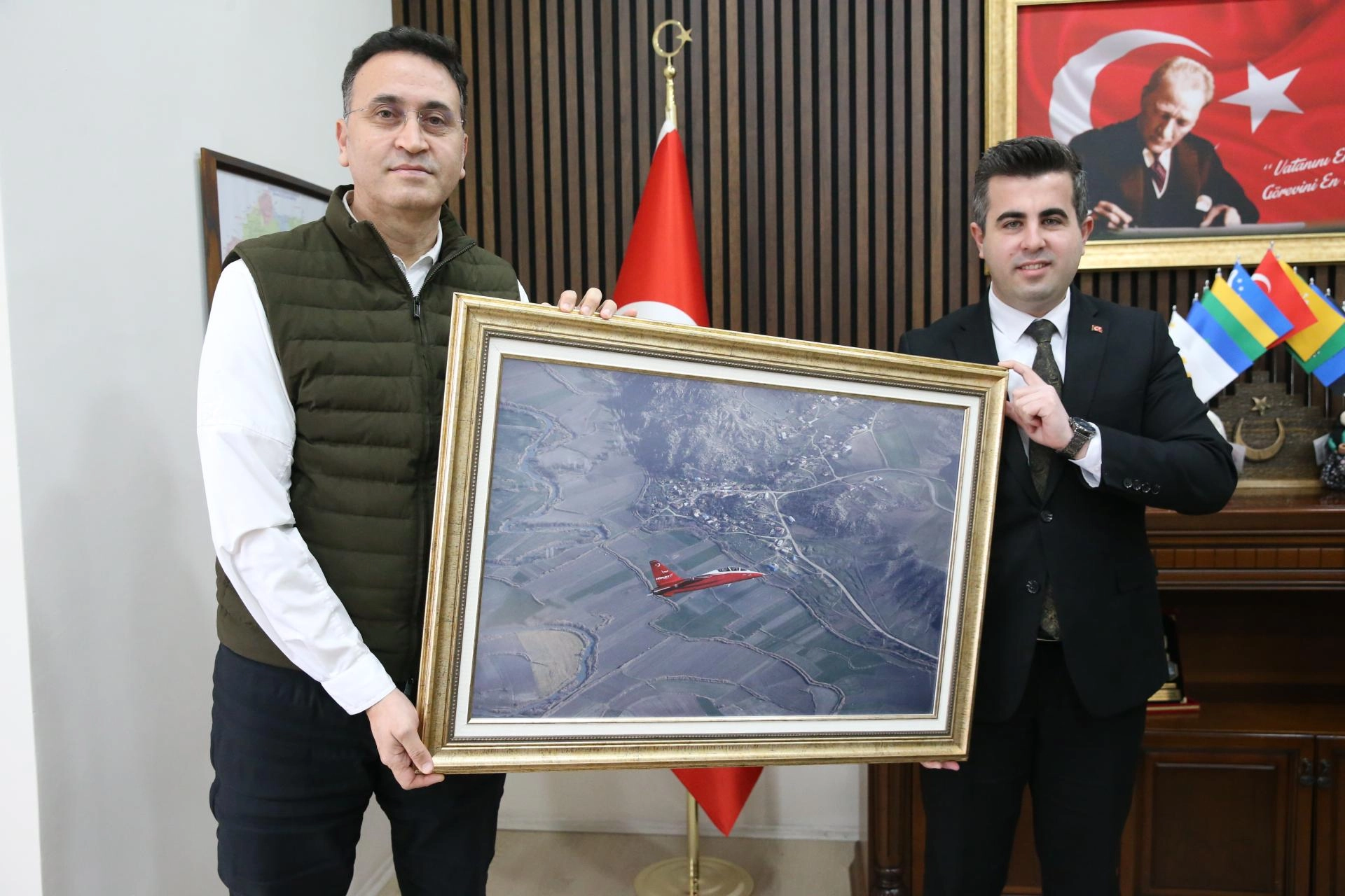 TUSAŞ ekibi, Mihalıççık Kaymakamı Furkan Öztürk'ü de makamında ziyaret etti.