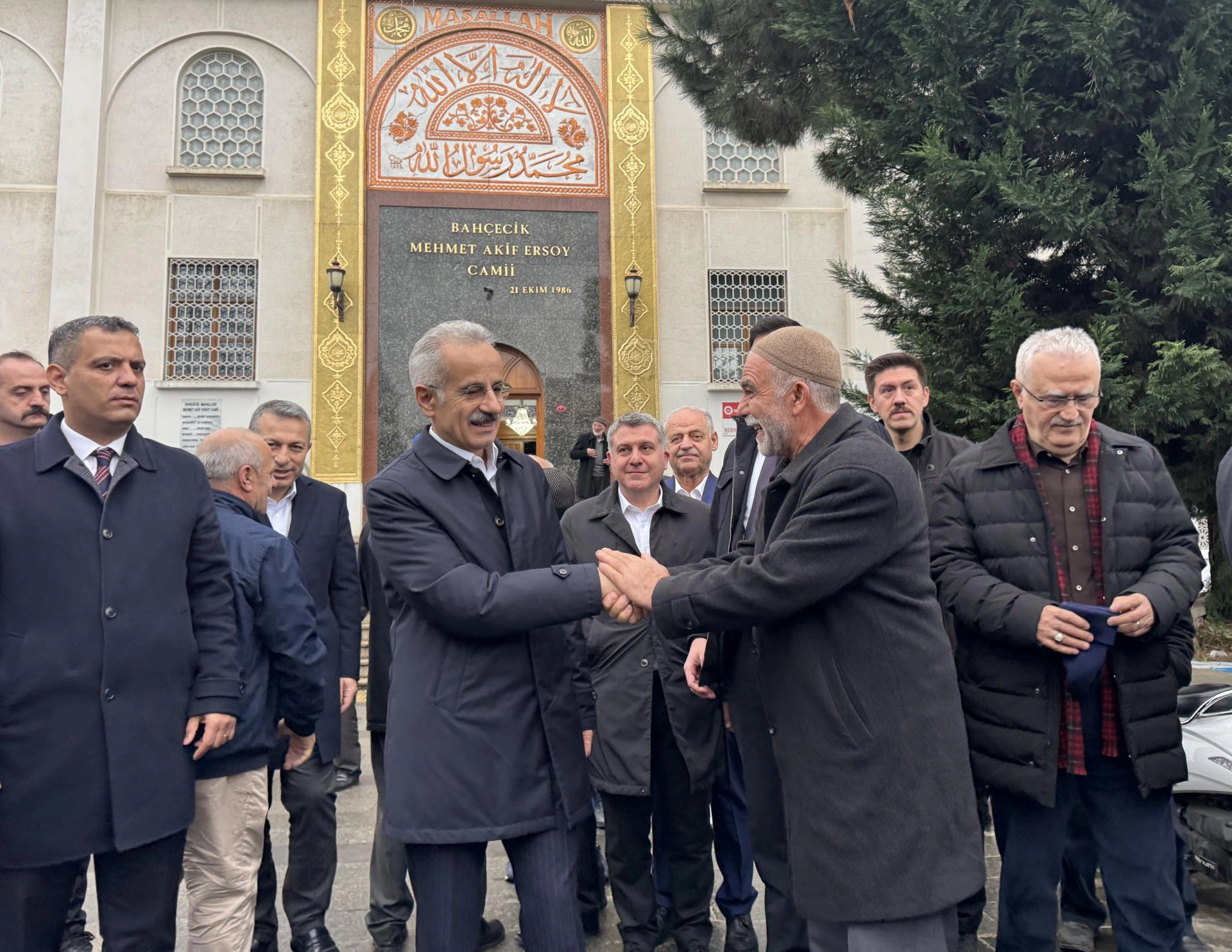 Bakan Uraloğlu, Vali Tahir Şahin ile bayram namazını eda etmek için Bahçecik Mahallesi'ndeki Mehmet Akif Ersoy Camisi'ne geldi.