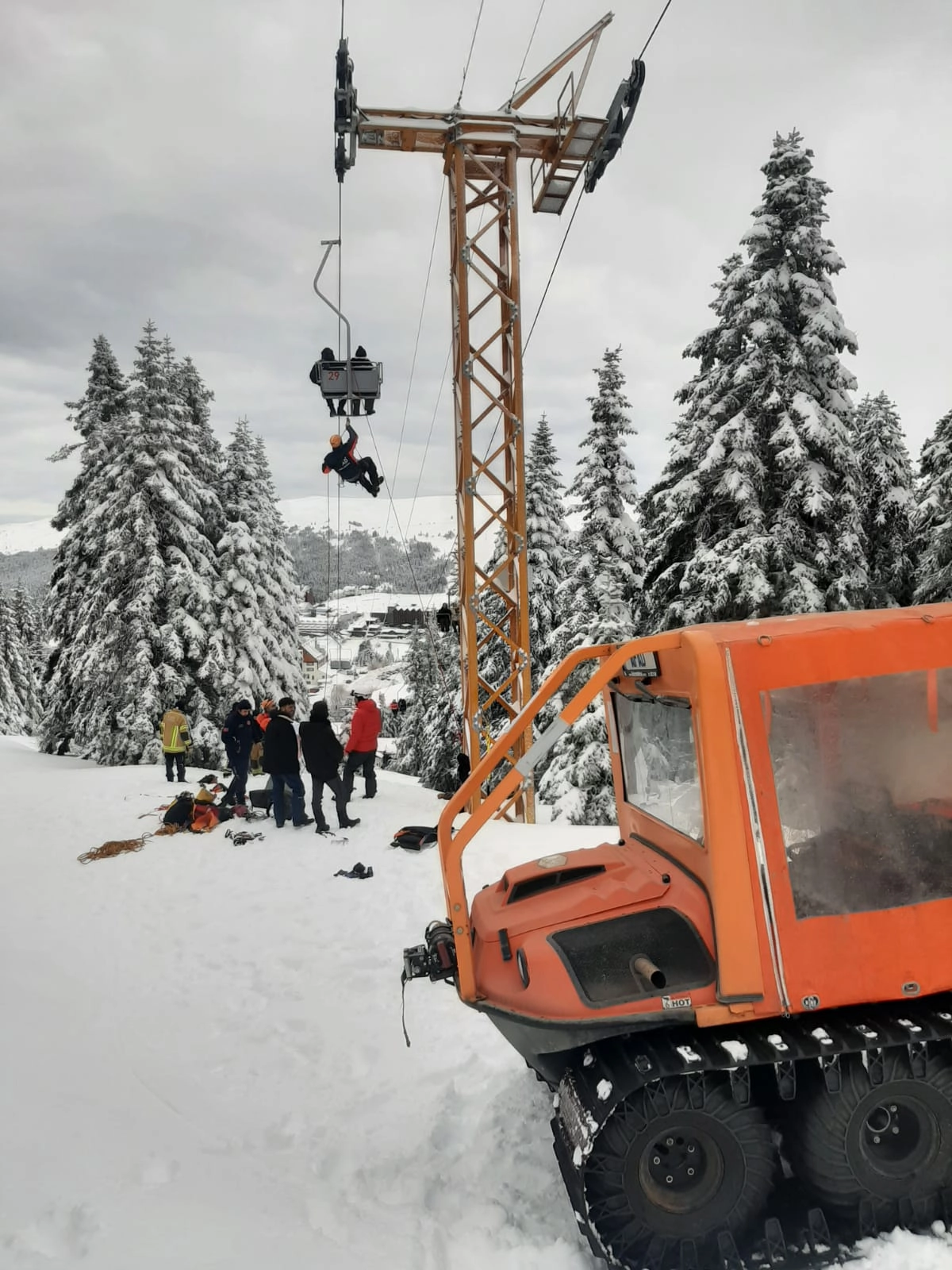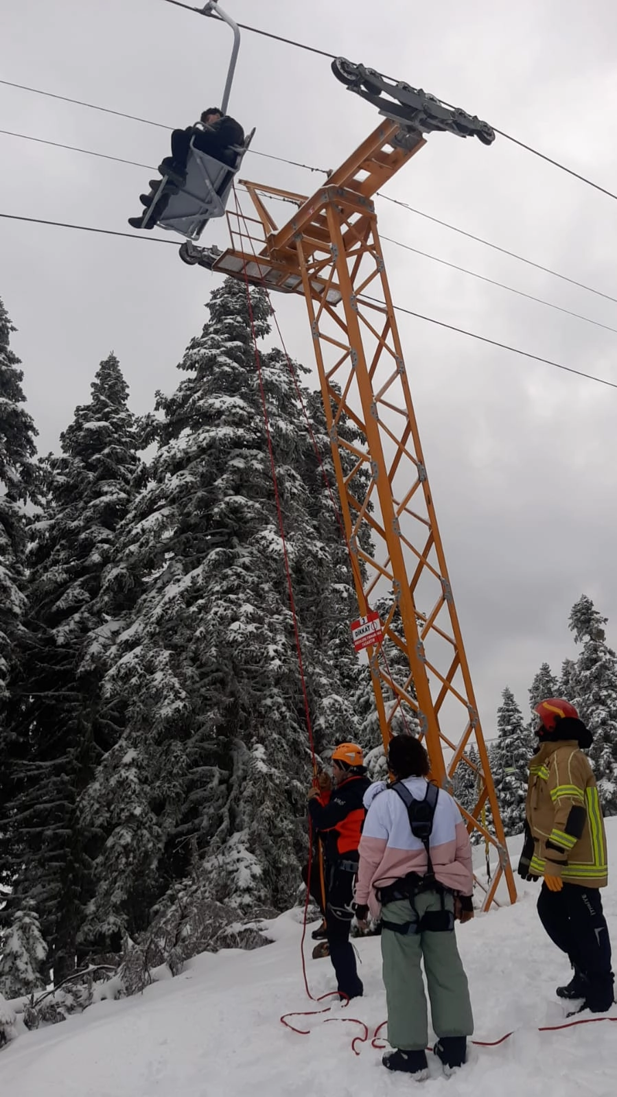Ekipler, telesiyejde mahsur kalanların kurtarılması için çalışmalarını sürdürüyor.