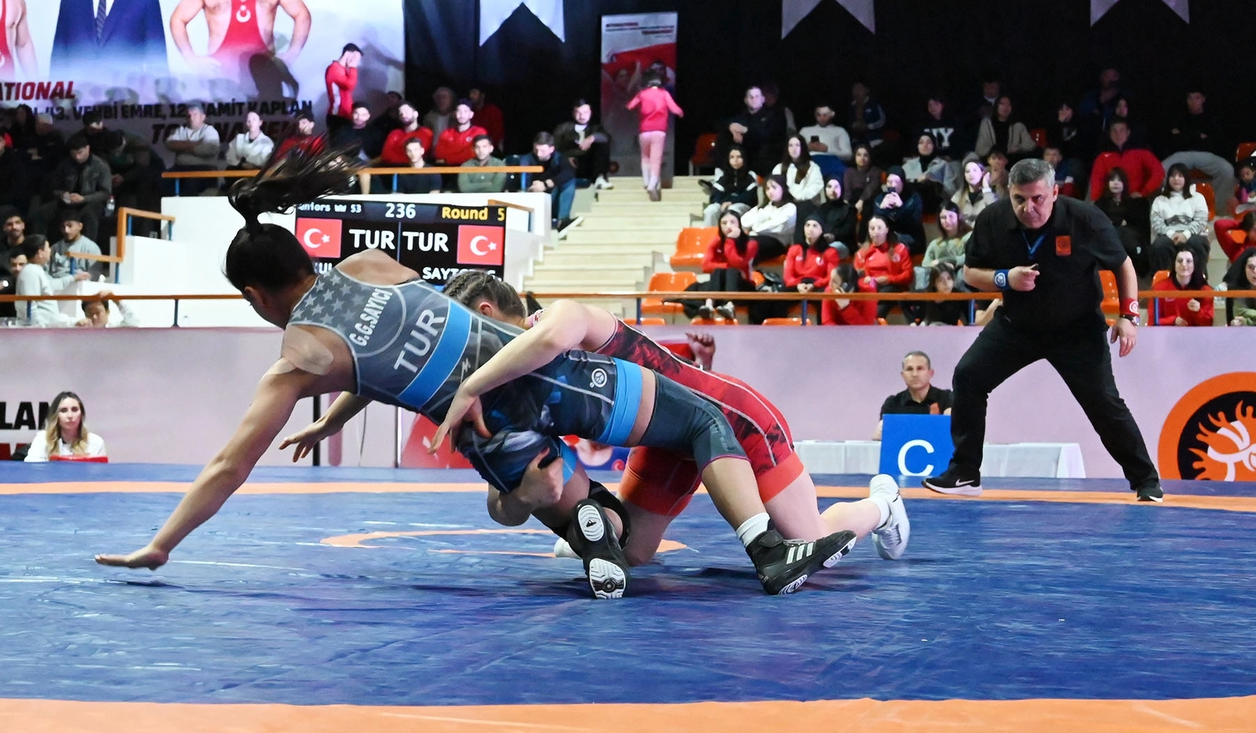 Turnuvada sporcular grekoromen, serbest stil ve kadın güreşi kategorilerinde dereceye girebilmek için mücadele ediyor.