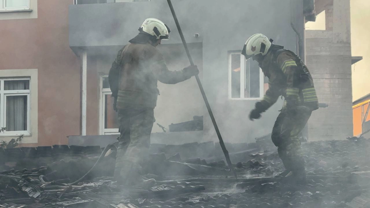 Polis caddede güvenlik önlemi alırken, itfaiye ekipleri de yangını söndürmek için çalışma başlattı.