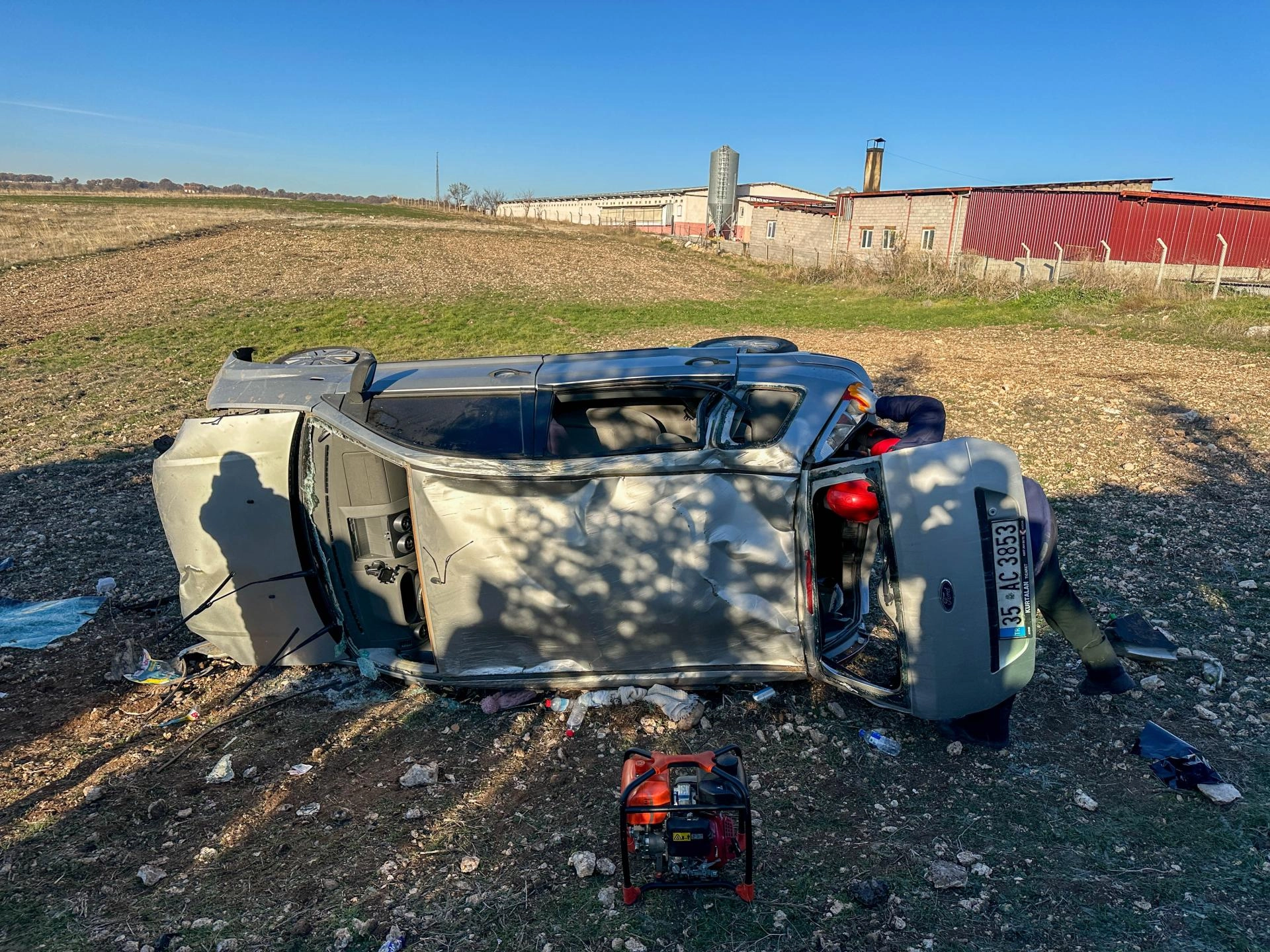 İbrahim A. (36) yönetimindeki 35 AC 3853 plakalı otomobil, Omurca köyü yakınlarında tarlaya devrildi.