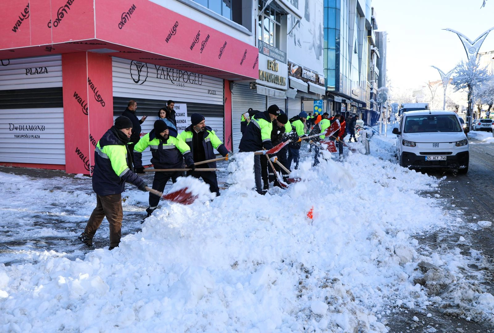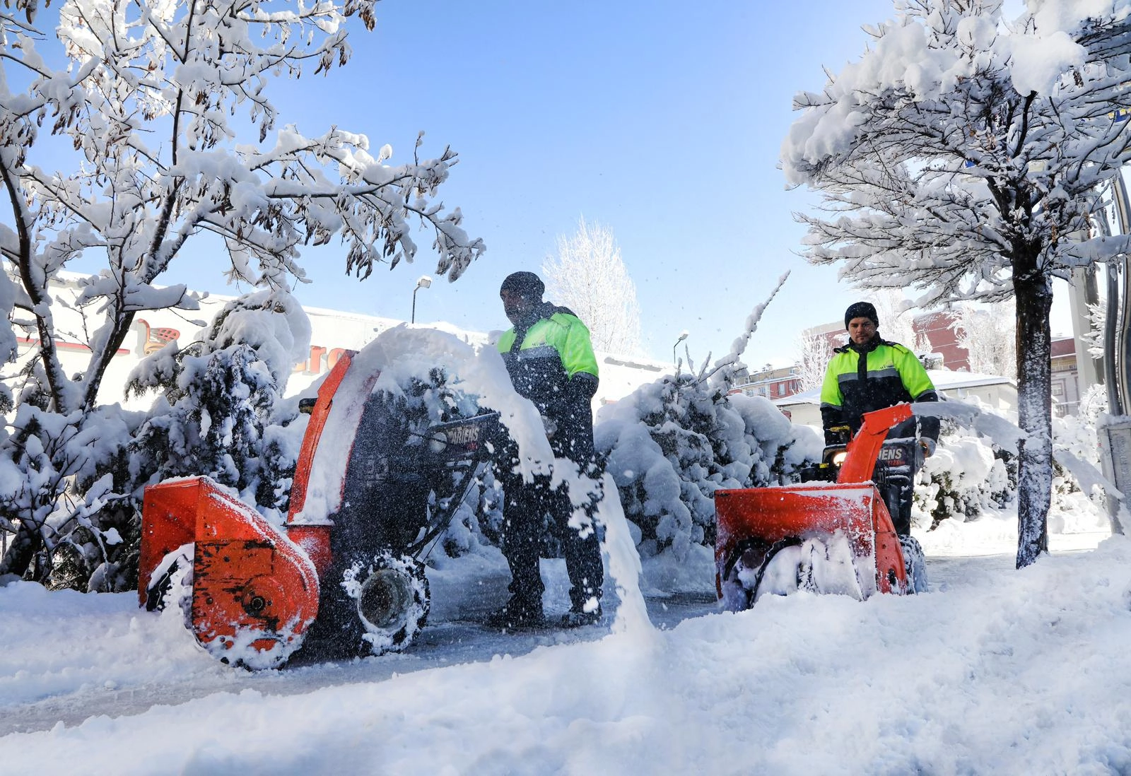 Ekipler, cadde ve kaldırımlarda da kar temizleme ve küreme çalışmalarını sürdürüyor.