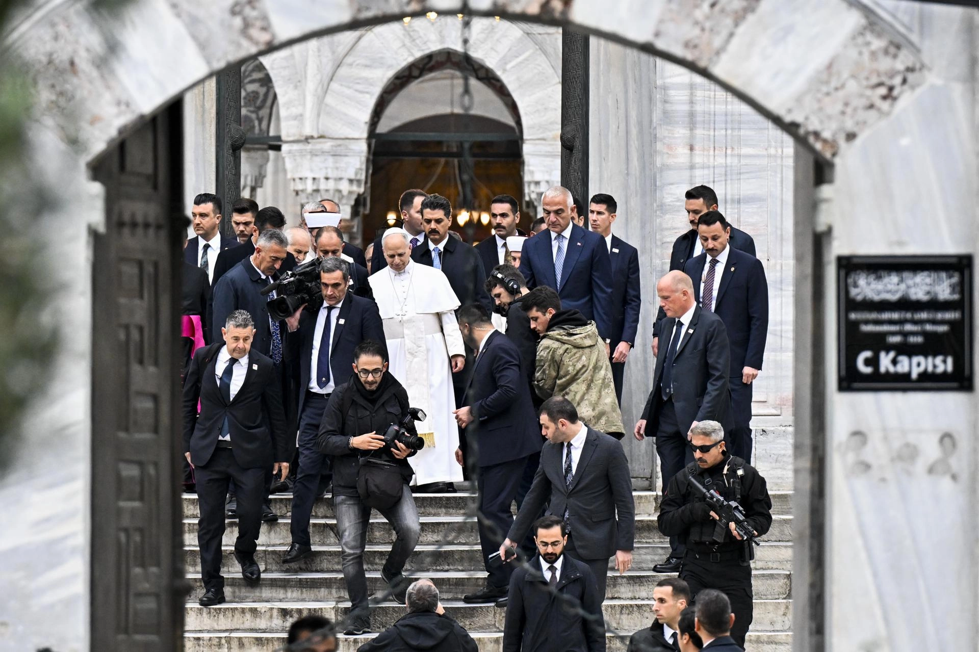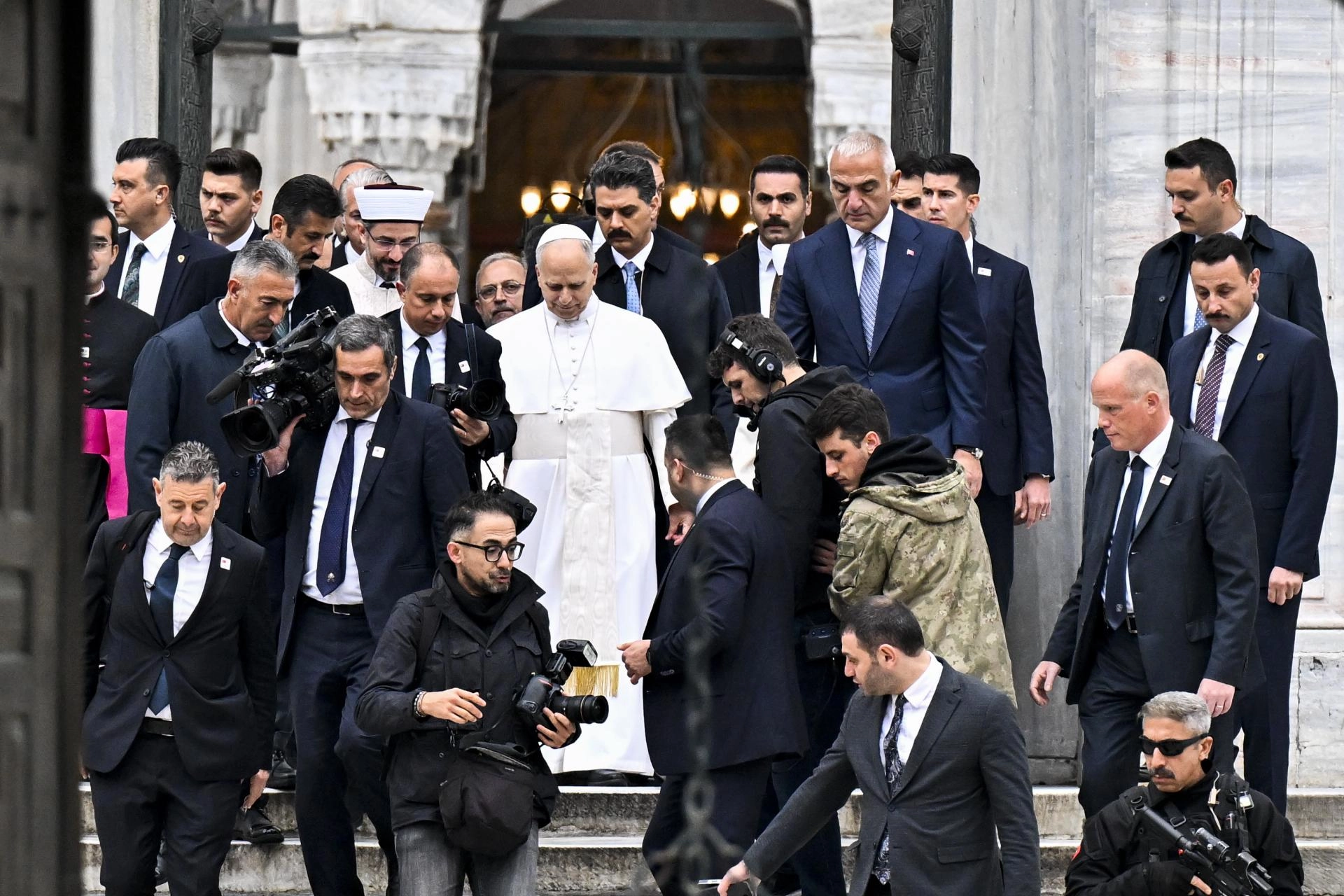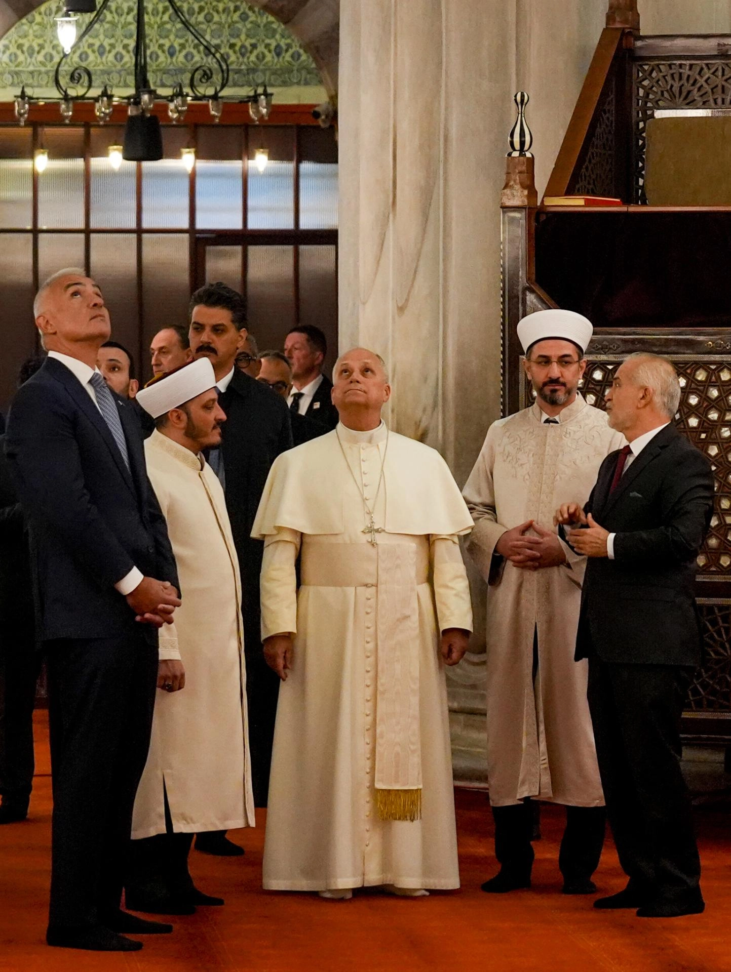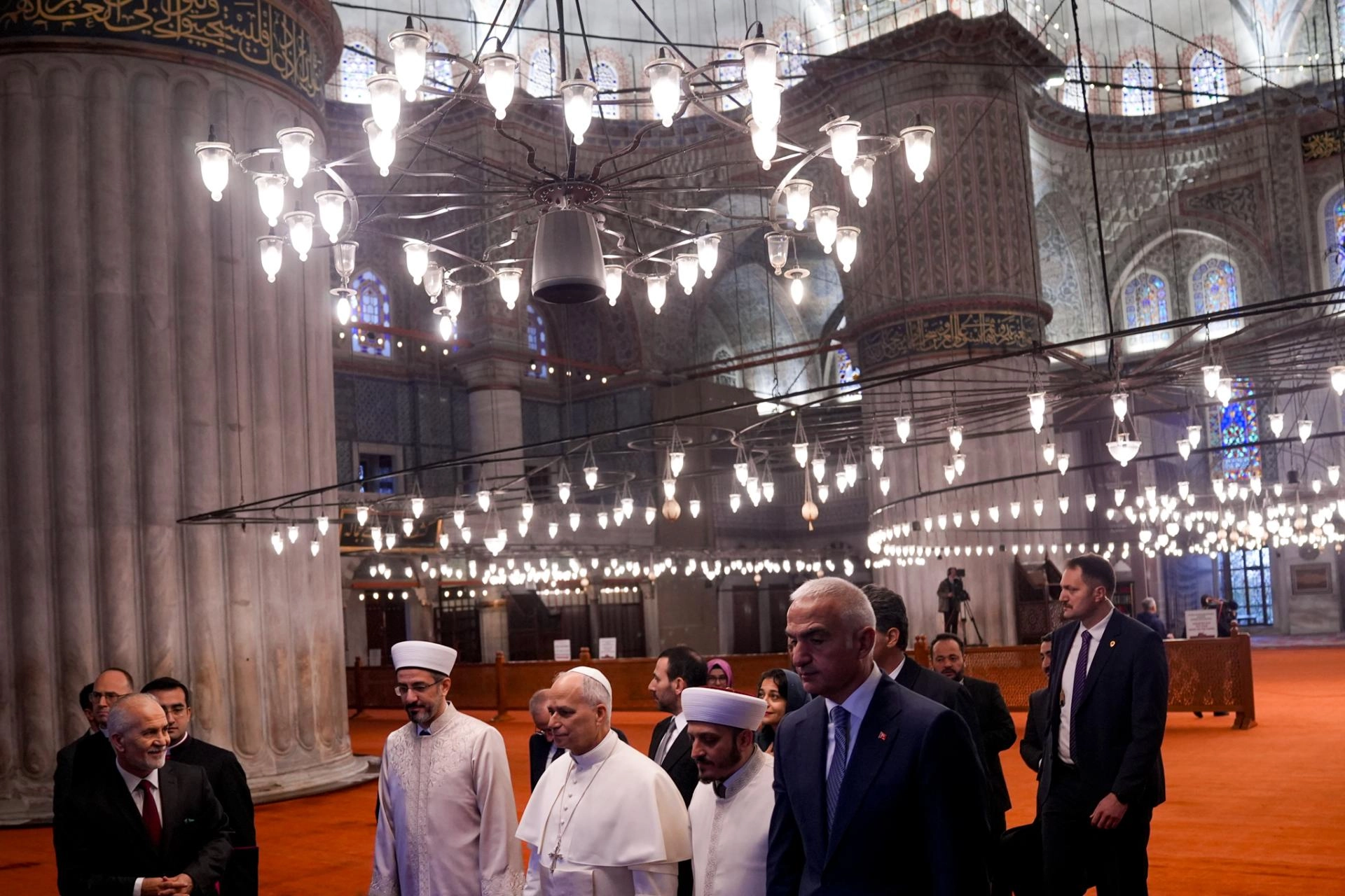 Türkiye ziyareti kapsamında İstanbul'da bulunan Papa 14. Leo ve beraberindeki heyet, Sultanahmet Camisi'ni gezdi.
