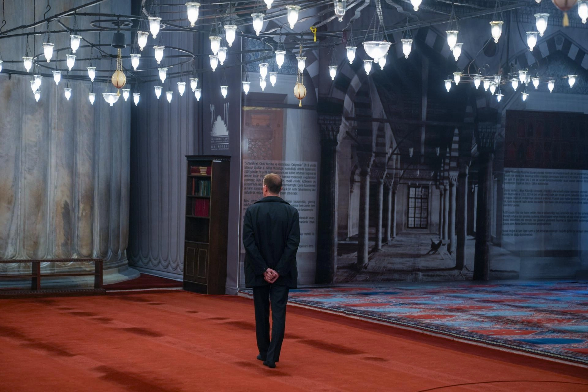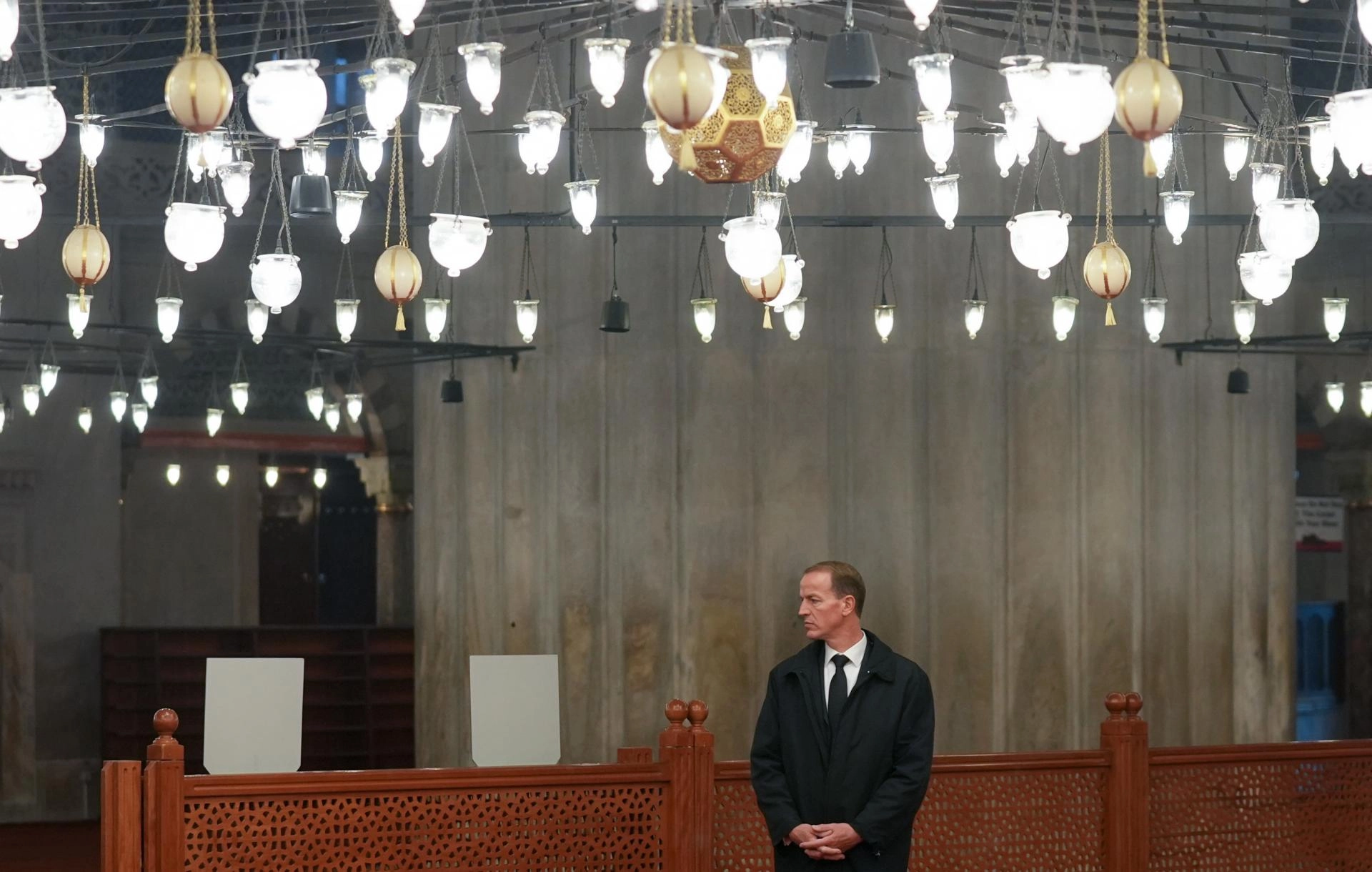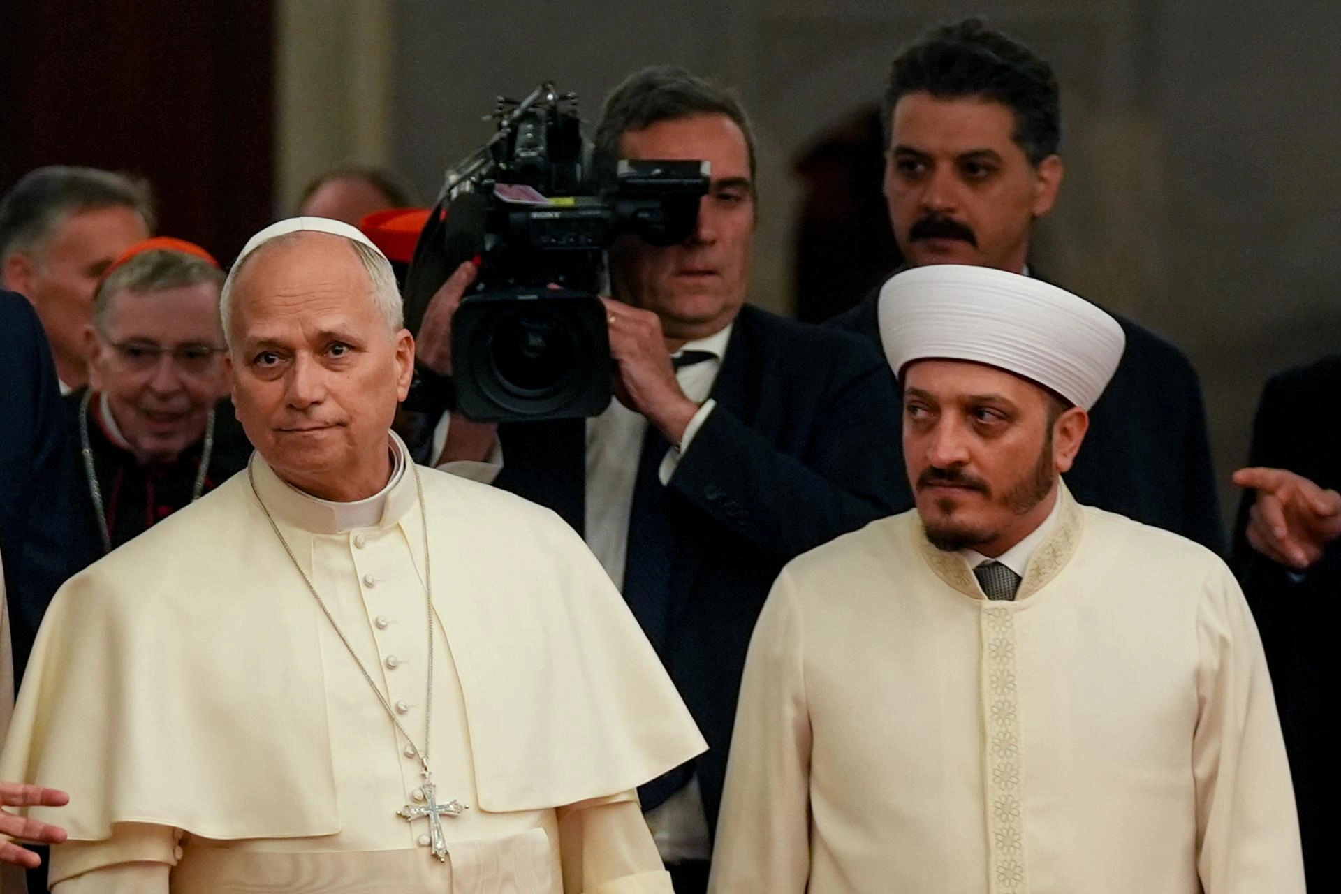 Papa 14. Leo'ya, Kültür ve Turizm Bakanı Mehmet Nuri Ersoy, İstanbul İl Müftüsü Emrullah Tuncel ile cami görevlileri eşlik etti.