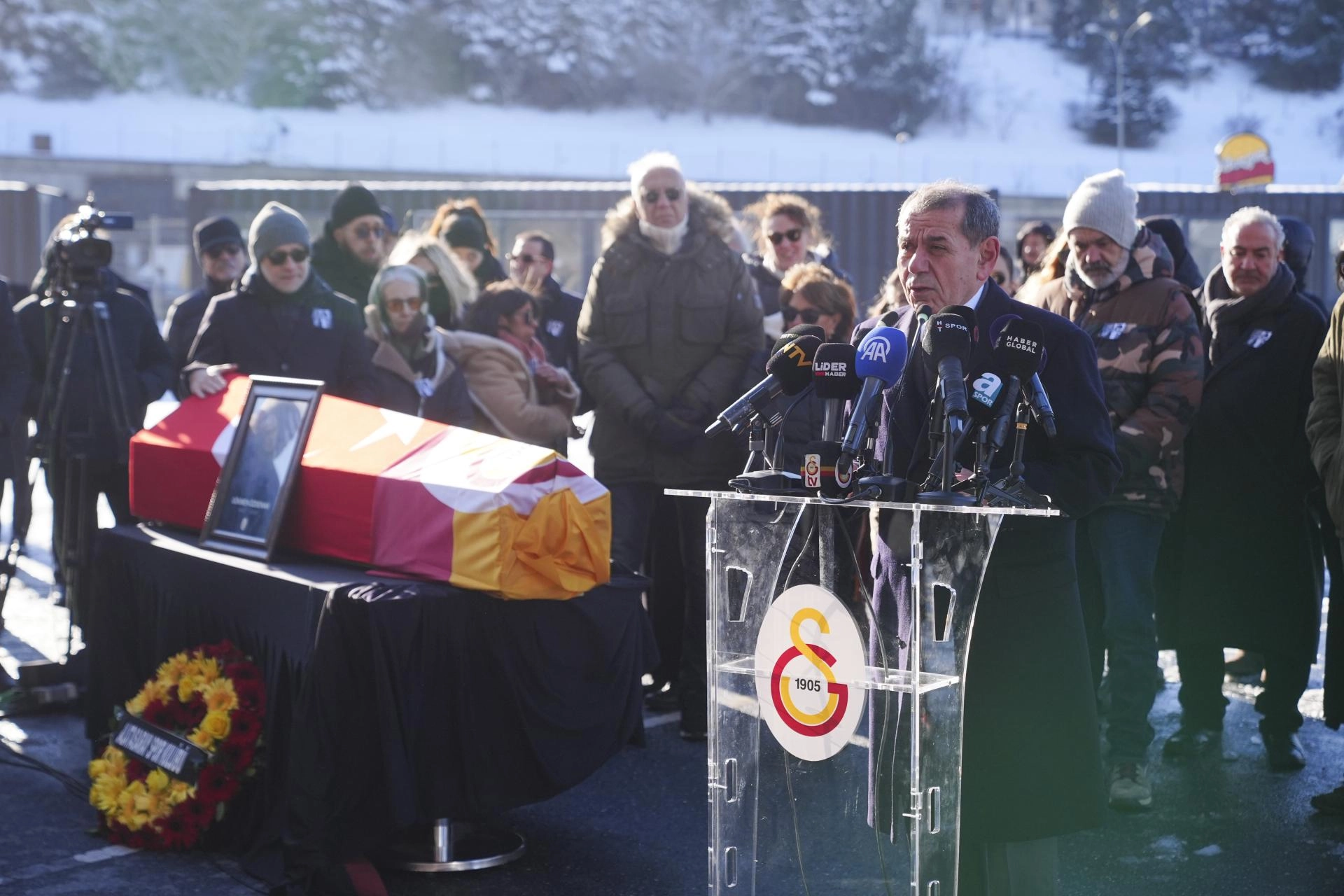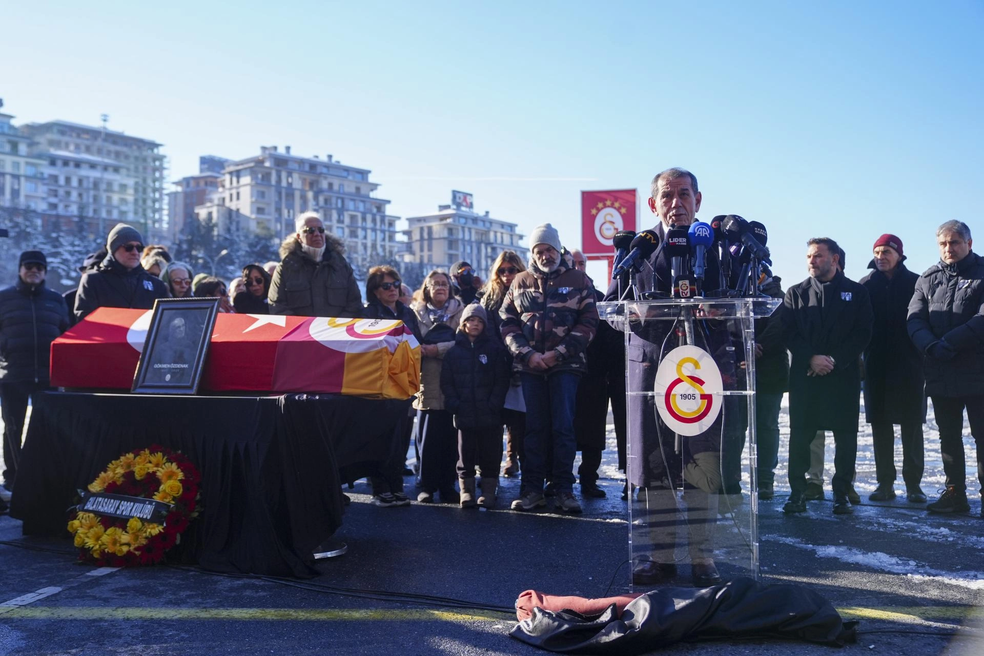 RAMS Park'ta gerçekleştirilen törene Galatasaray Kulübü Başkanı Dursun Özbek, sarı-kırmızılı kulübün yönetim kurulu üyeleri, teknik direktör Okan Buruk ve merhumun ailesi ile sevenleri katıldı.