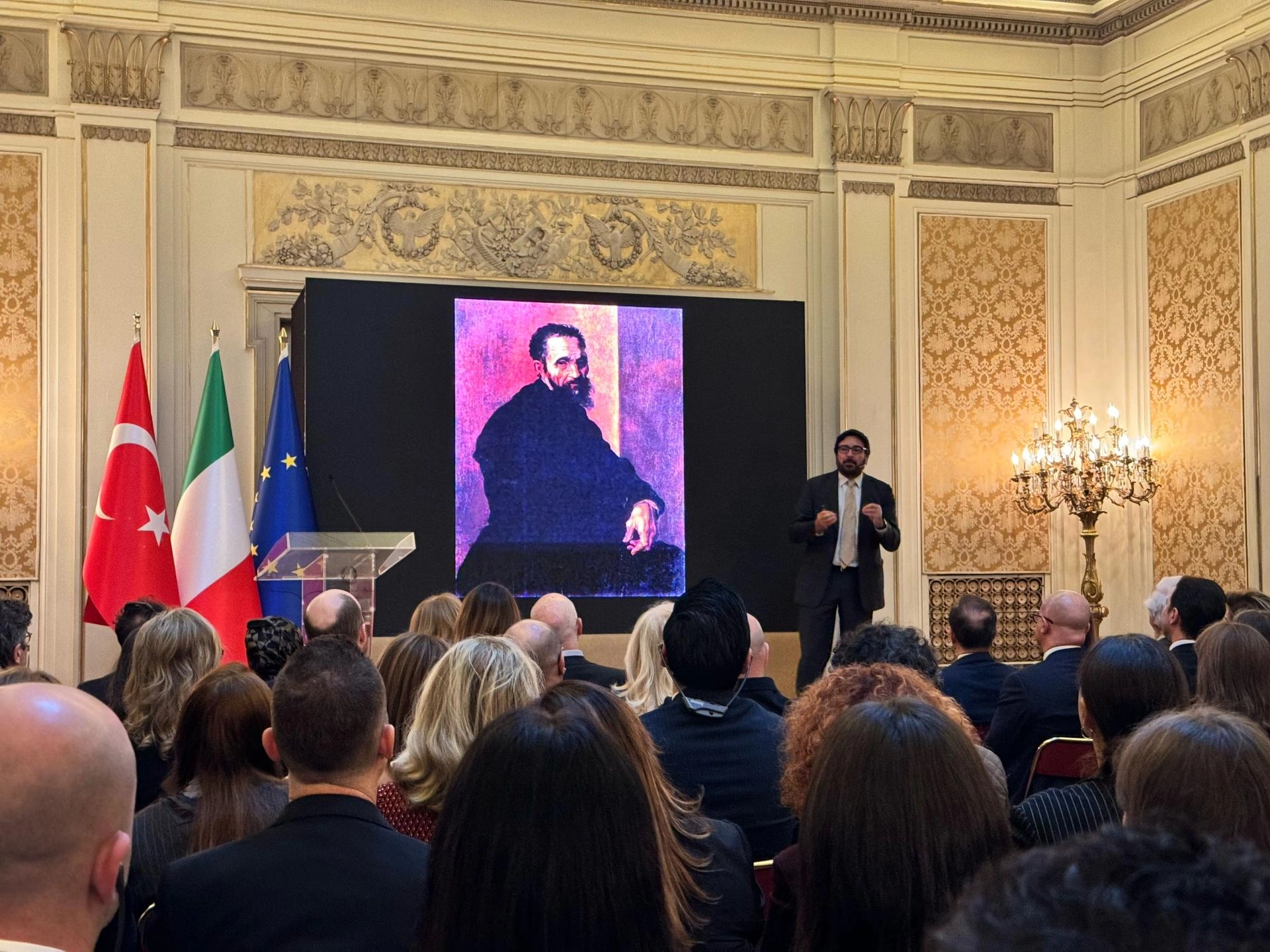 İtalya'nın Ankara Büyükelçiliği ve İtalyan Kültür Merkezi, Ketebe Yayınları işbirliğiyle hazırlanan "Michelangelo-Bir Dahinin Otobiyografisi" kitabının tanıtım etkinliği sanat tarihi ve edebiyat dünyasından isimleri Venedik Sarayı'nda bir araya getirdi.