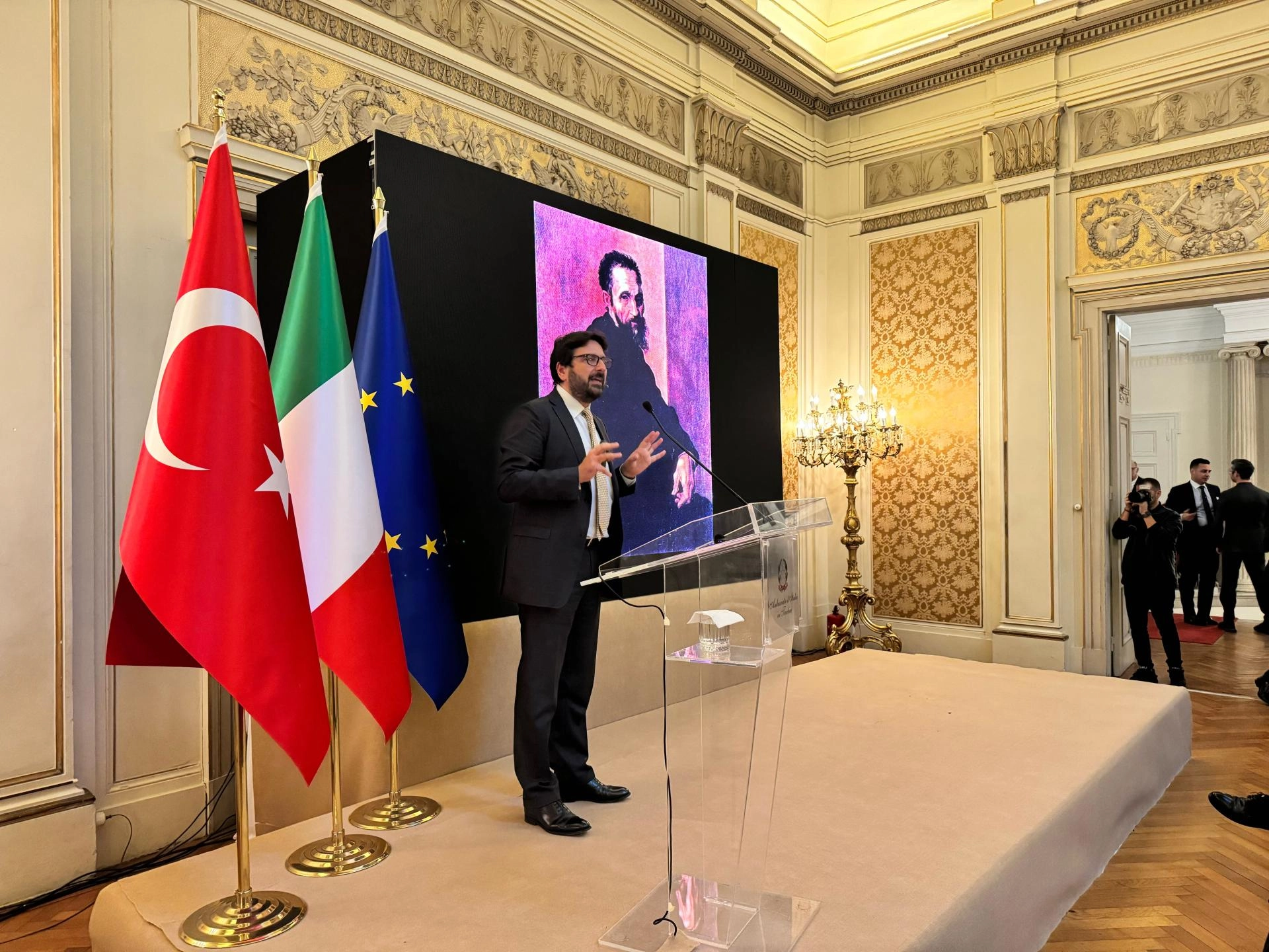 İtalya Büyükelçisi Giuseppe Manzo, Michelangelo'nun kitapta da yer verilen sözlerinden bir alıntı yaparak başladığı açılış konuşmasında "Bu akşam aslında sadece tek bir şeyden bahsedeceğiz, salt bir dehadan. Herhangi bir orta nokta aramayan, zamanla sınanmayan bir deha. Hatta tam tersi, zamanın önünde giden bir İtalyan dehası." dedi.