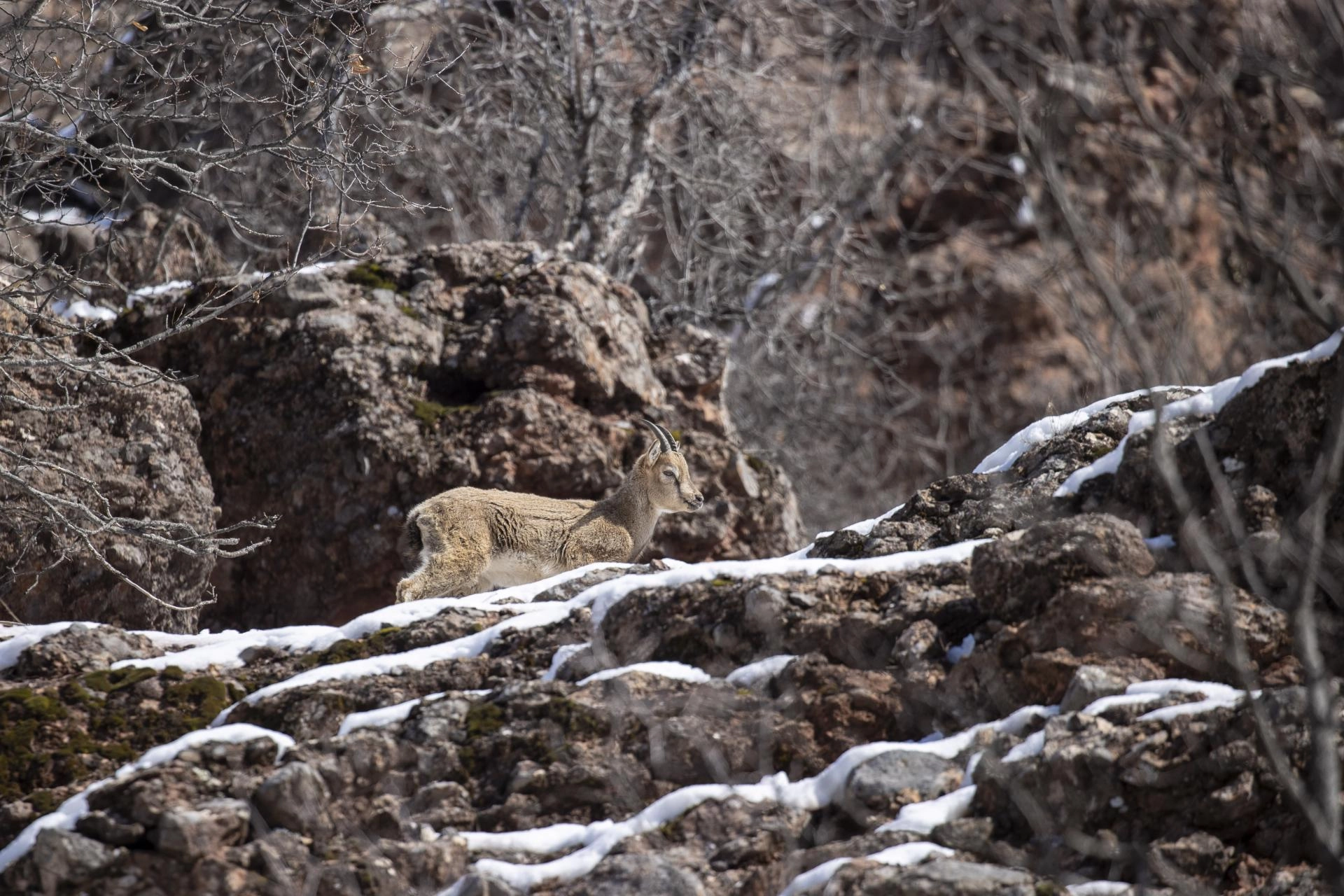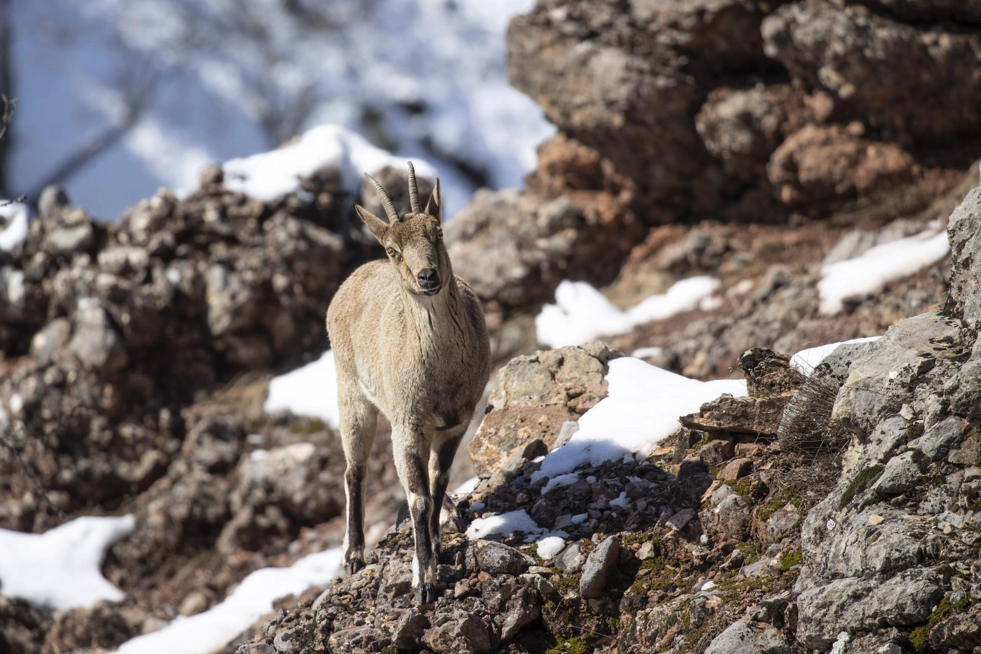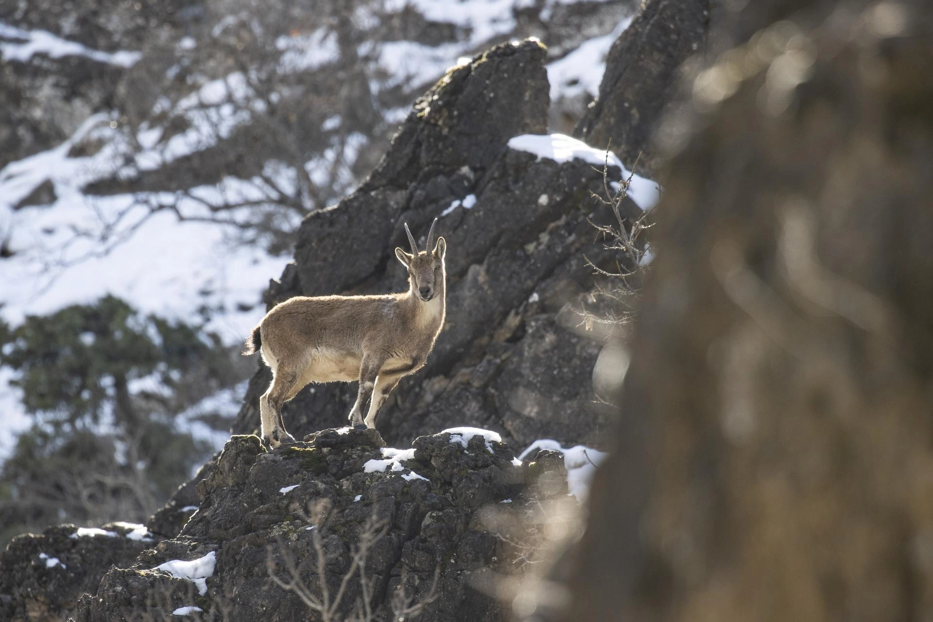 Milli parkta güvenle yaşam süren yaban keçileri, il merkezi başta olmak üzere çevre illerden fotoğrafçıların ilgi odağı oluyor.