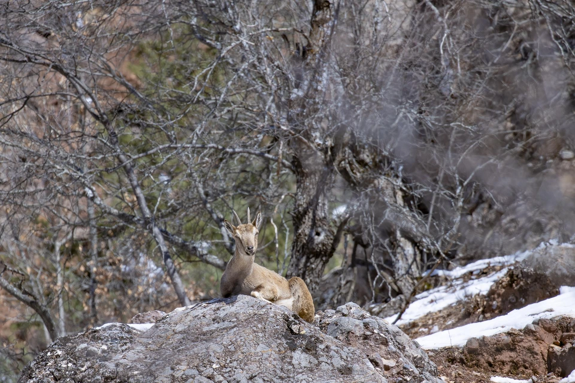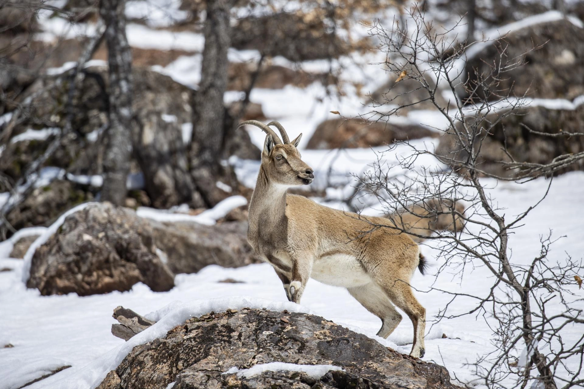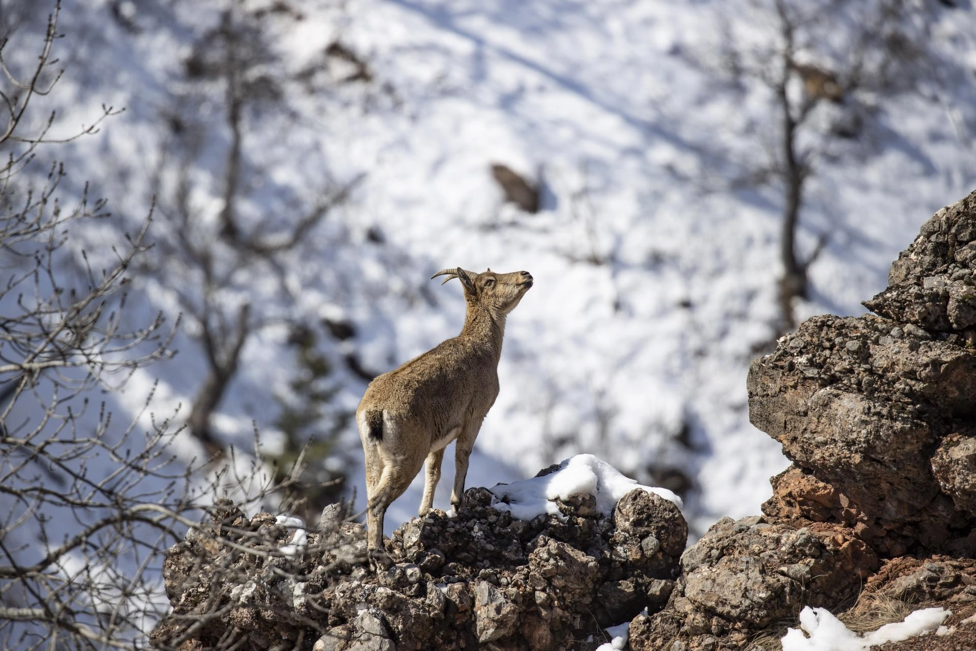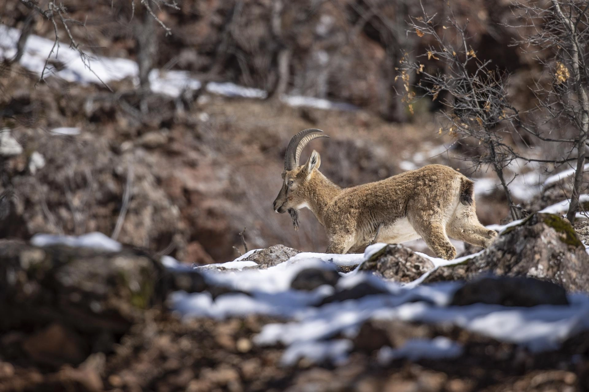 Milli parkta güvenle yaşam süren yaban keçileri, il merkezi başta olmak üzere çevre illerden fotoğrafçıların ilgi odağı oluyor.