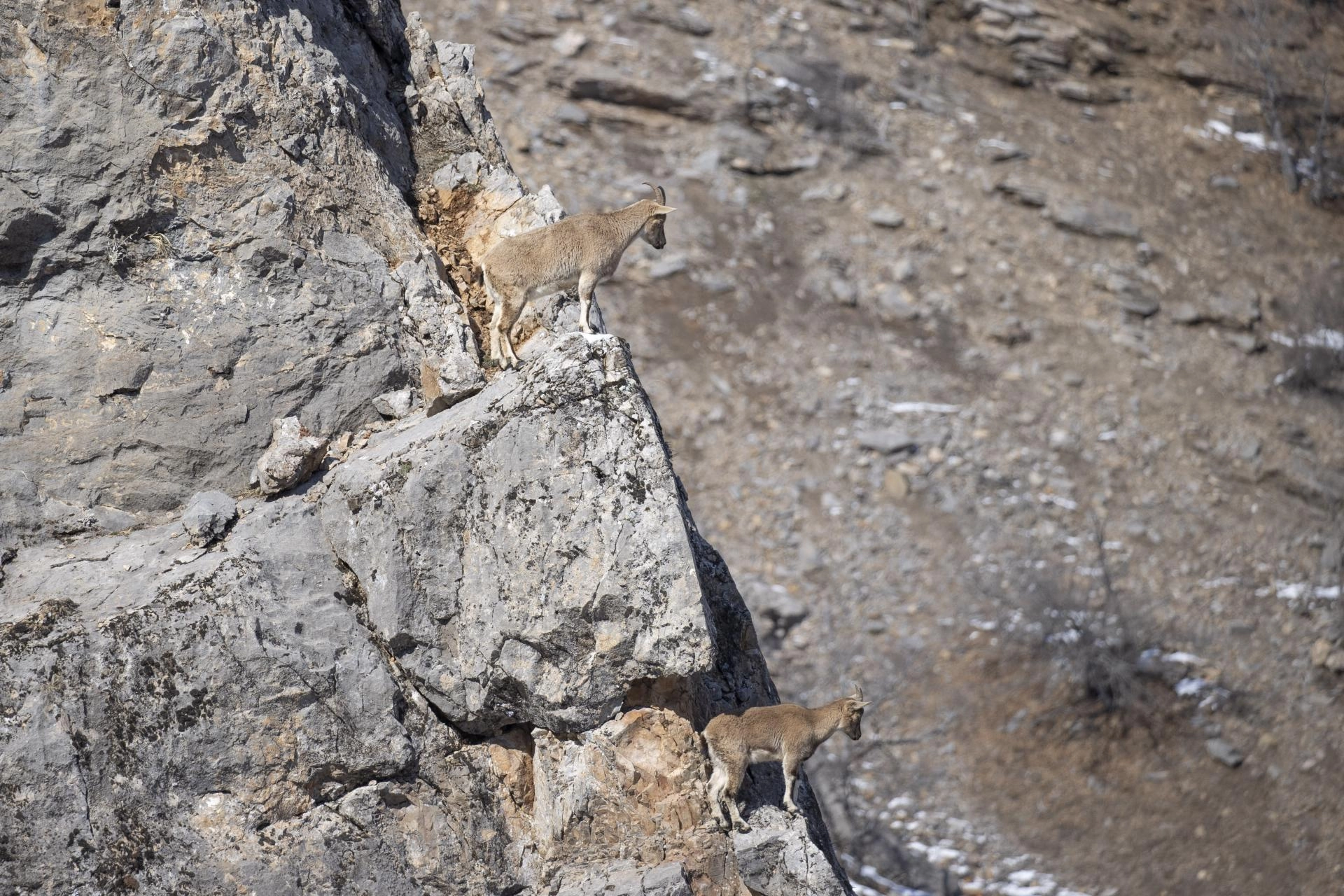 TUNCELİ (AA) - Tunceli'de yaban keçileri, Munzur Vadisi Milli Parkı'nın sarp yamaçlarında yiyecek ararken görüntülendi.