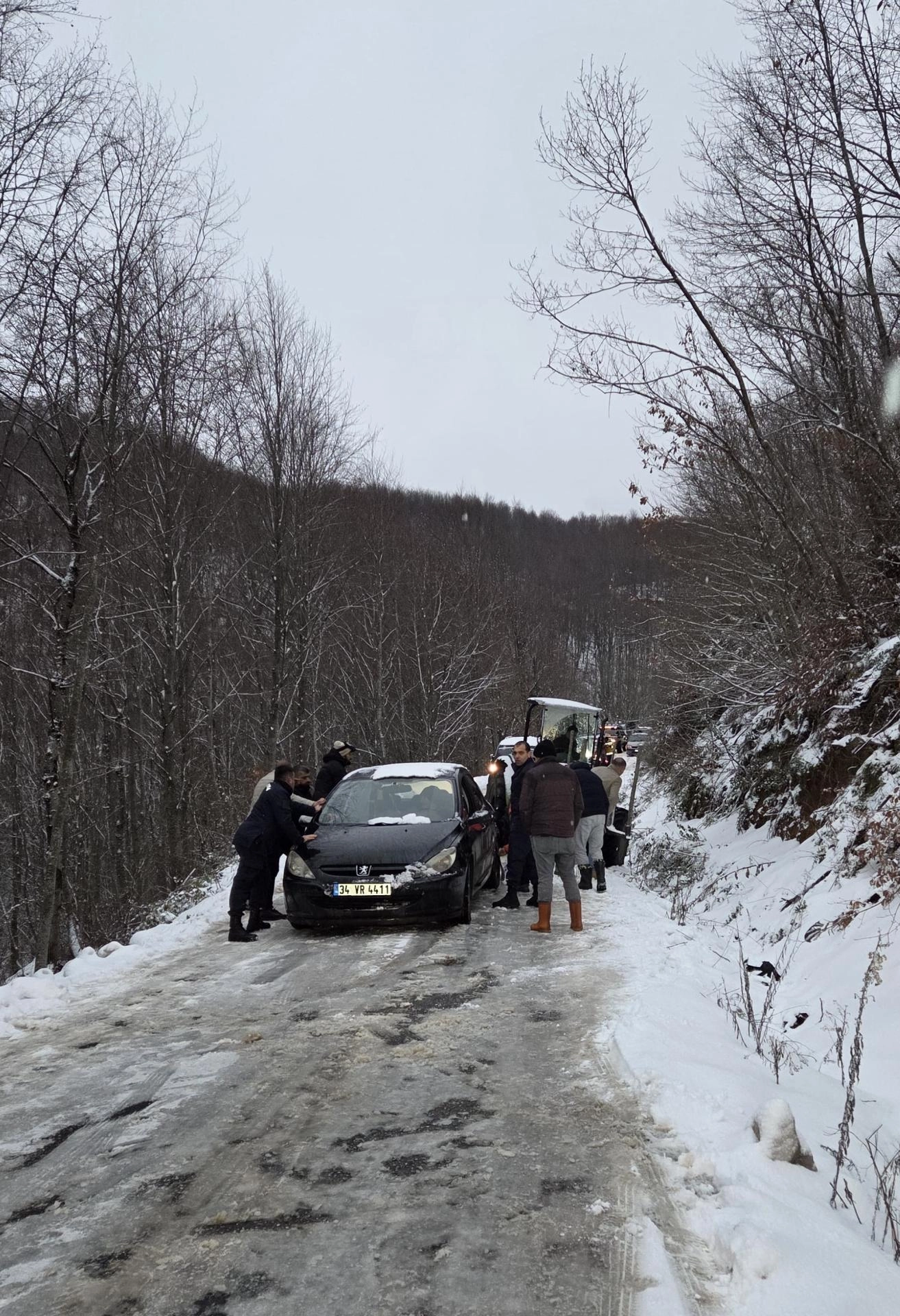İlçeye bağlı Teşvikiye beldesindeki Delmece Yaylası'na yağışı görmeye araçlarıyla giden 35 kişi, yolda mahsur kaldı.