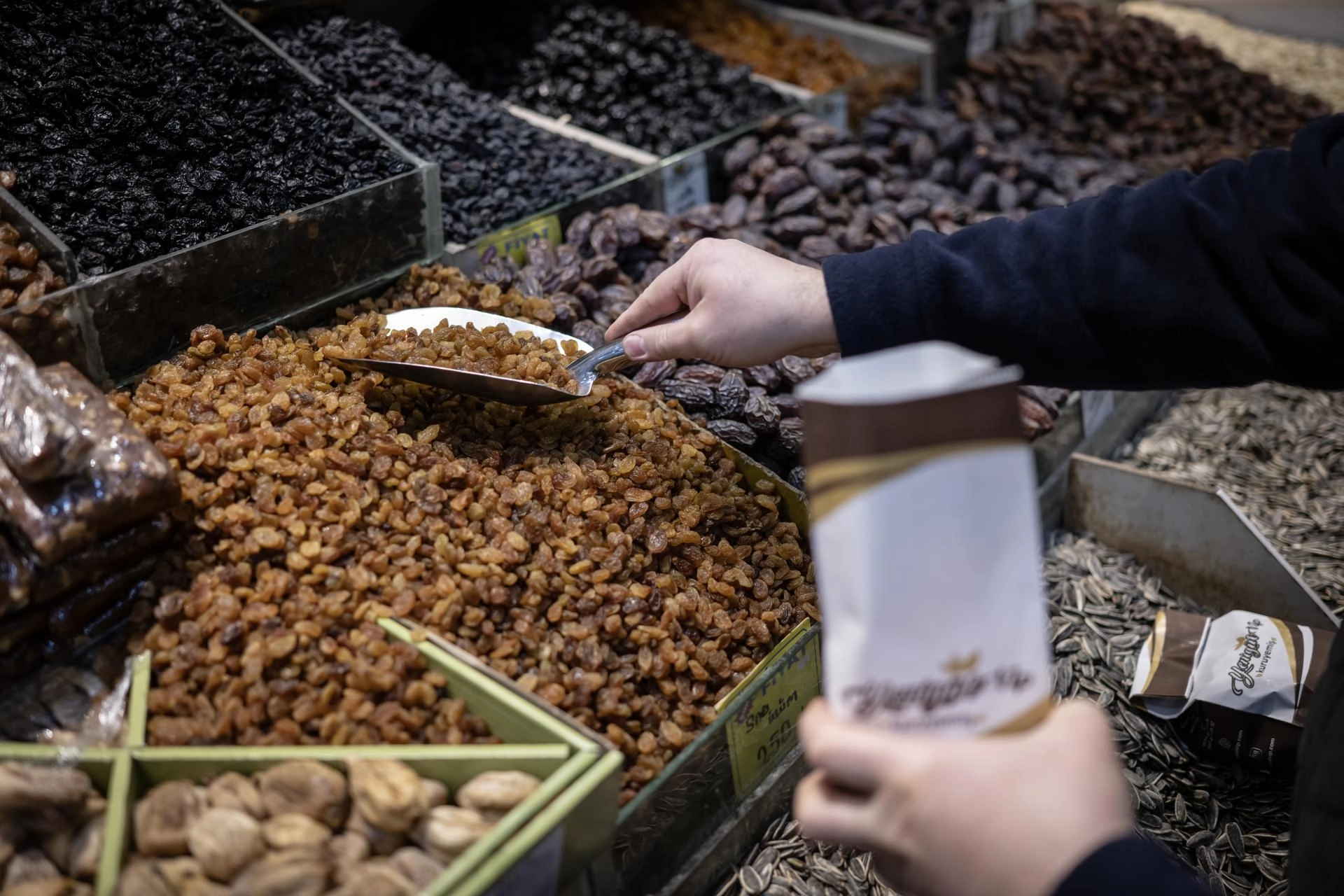 Yeni yıla sayılı günler kala esnafın hazırlıklarını tamamladığını ve dükkanların hareketlenmeye başladığını söyleyen Sevimli, "Yılbaşı sofralarımızın vazgeçilmezi olan kuru yemiş, her sene olduğu gibi bu sene de sofralarda yerini alacak. Uzmanlar da kuru yemişin ölçülü tüketildiğinde insan sağlığına önemli katkılar sağladığını ifade ediyor." dedi.