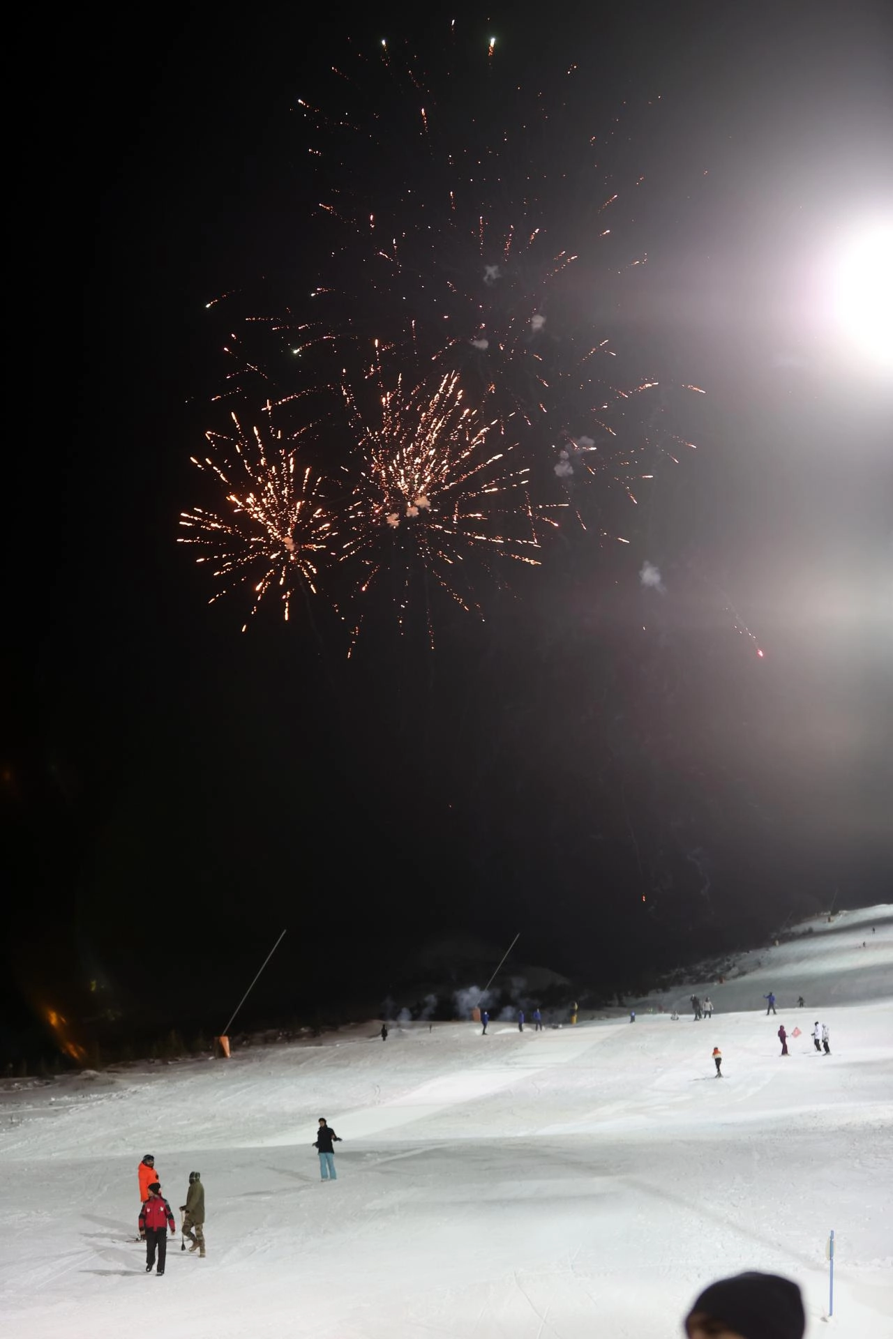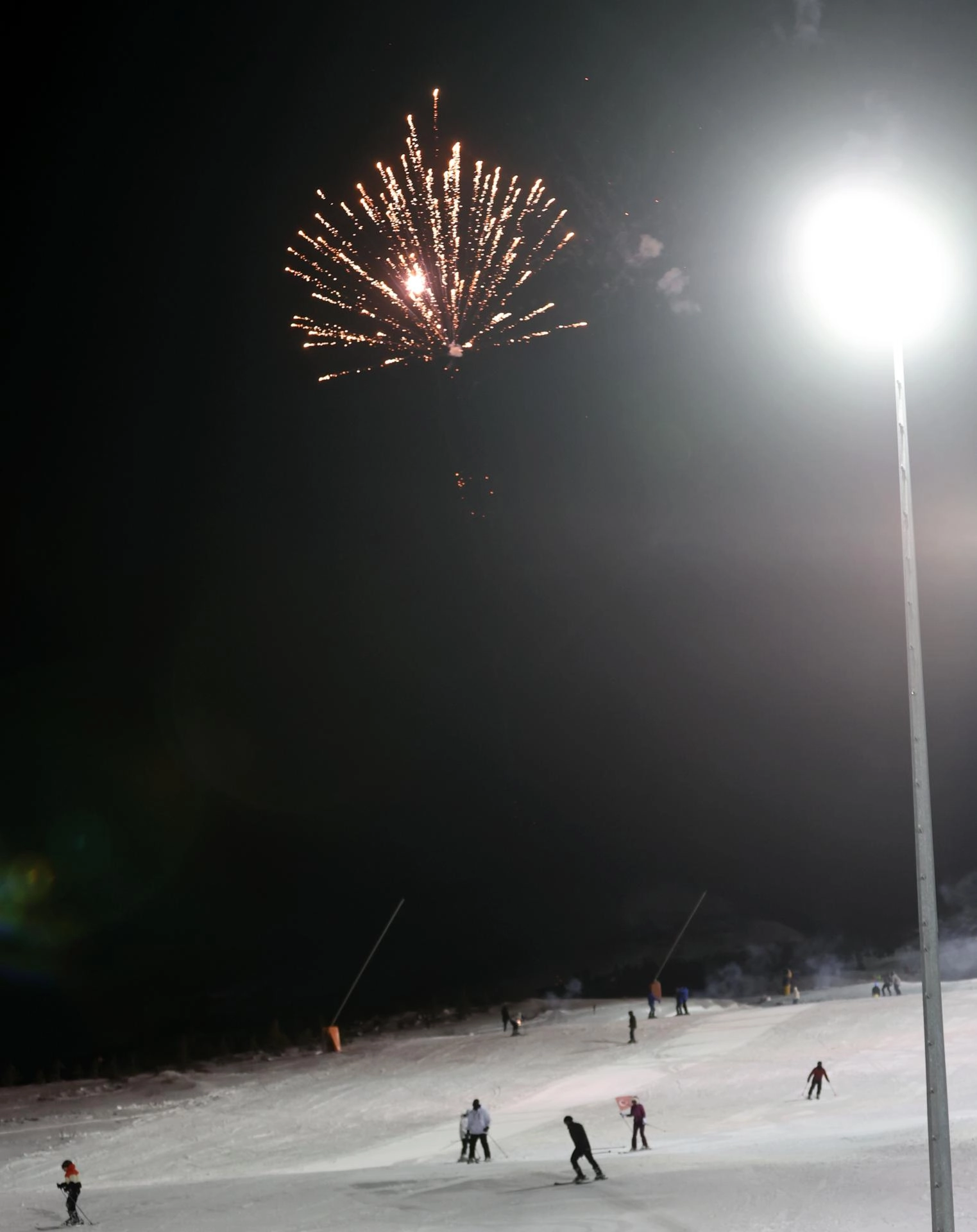 Kayakçılar havai fişek eşliğinde kayak keyfi yaşadı.