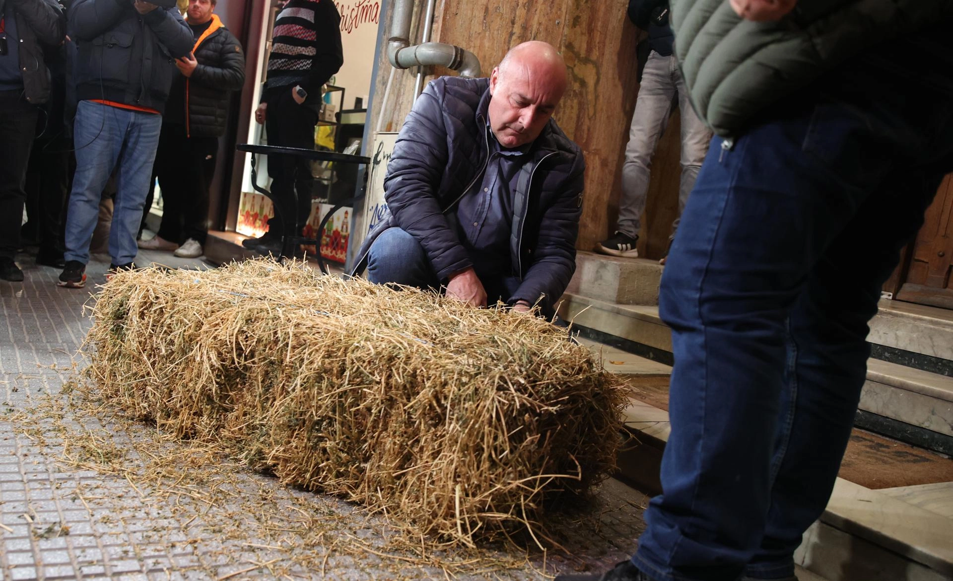 Akşam saatlerinde traktörleriyle kent merkezine gelen çiftçiler, hükümete ilettikleri taleplere yanıt verilene kadar geri adım atmayacaklarını ifade ederek, milletvekili bürolarının girişine saman balyaları bıraktı.