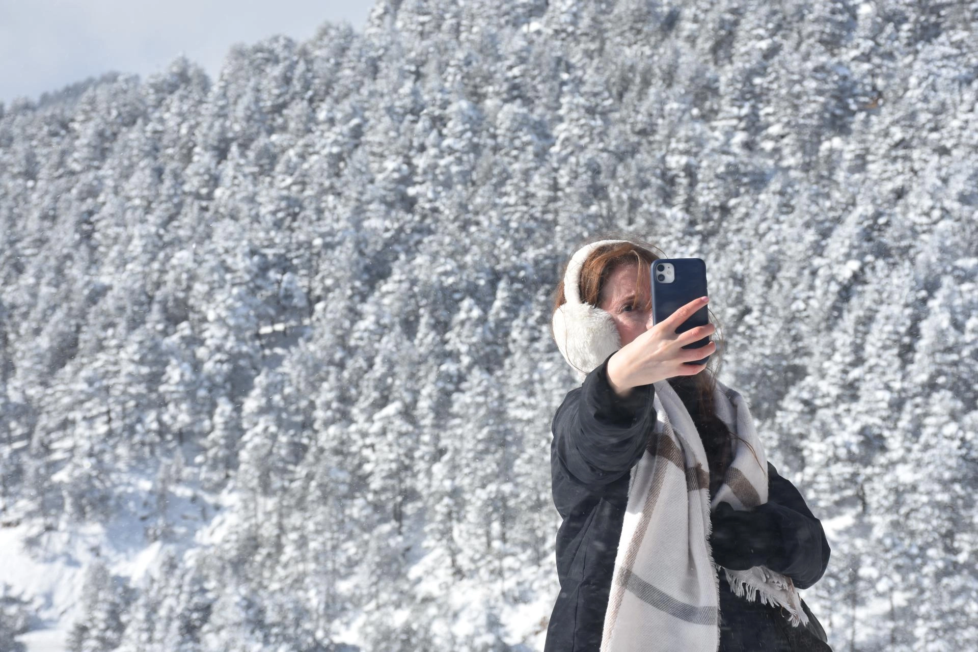 Doğaseverler ise beyaza bürünen Zigana Dağı'nda yürüyüş yaparak zamanlarını değerlendiriyor.